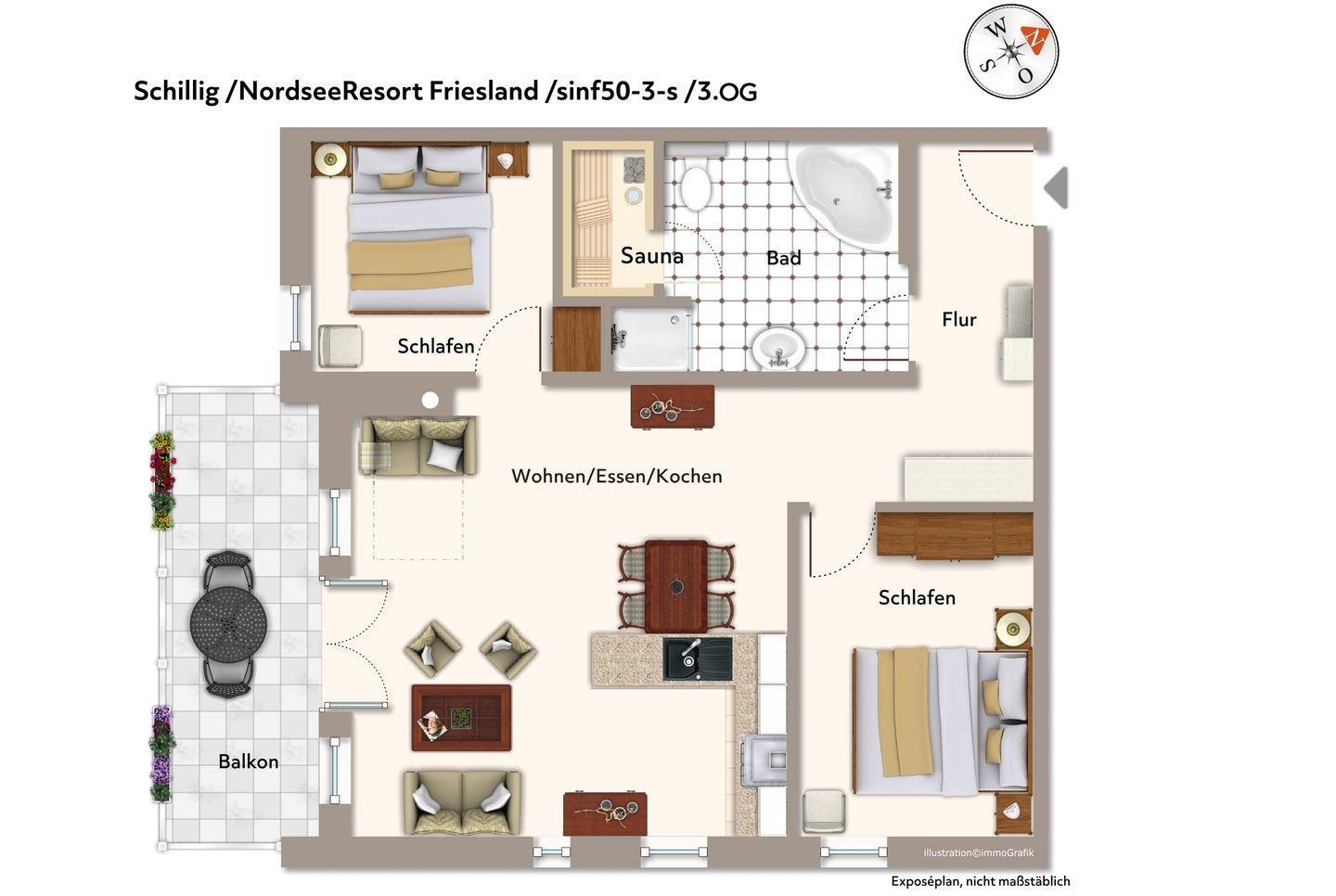 Modernes Ferienapartment an der Nordsee mit Sauna und Südbalkon, nur 200 m vom Strand entfernt.