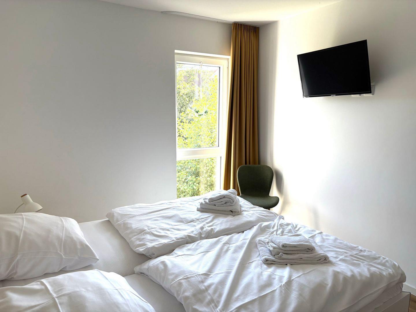 Es stehen euch zwei separate Schlafzimmer mit Doppelbett (1,80 x 2,00 m) und Kleiderschrank zur Verfügung. In beiden Schlafzimmern befindet sich ein eigener SMART-TV (32 Zoll).