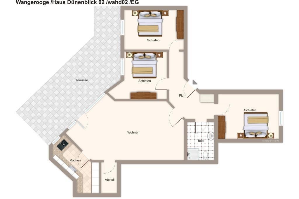 Die 82 m² große 4-Zimmer Ferienwohnung ist für bis zu 6 Personen geeignet. Besonders hervorzuheben ist die Terrasse mit Zugang zum Garten und eigenem Strandkorb. Hier könnt ihr, vom Rauschen des Meeres und der sanften Brandung begleitet, das herrliche Inselklima mit allen Sinnen genießen.
