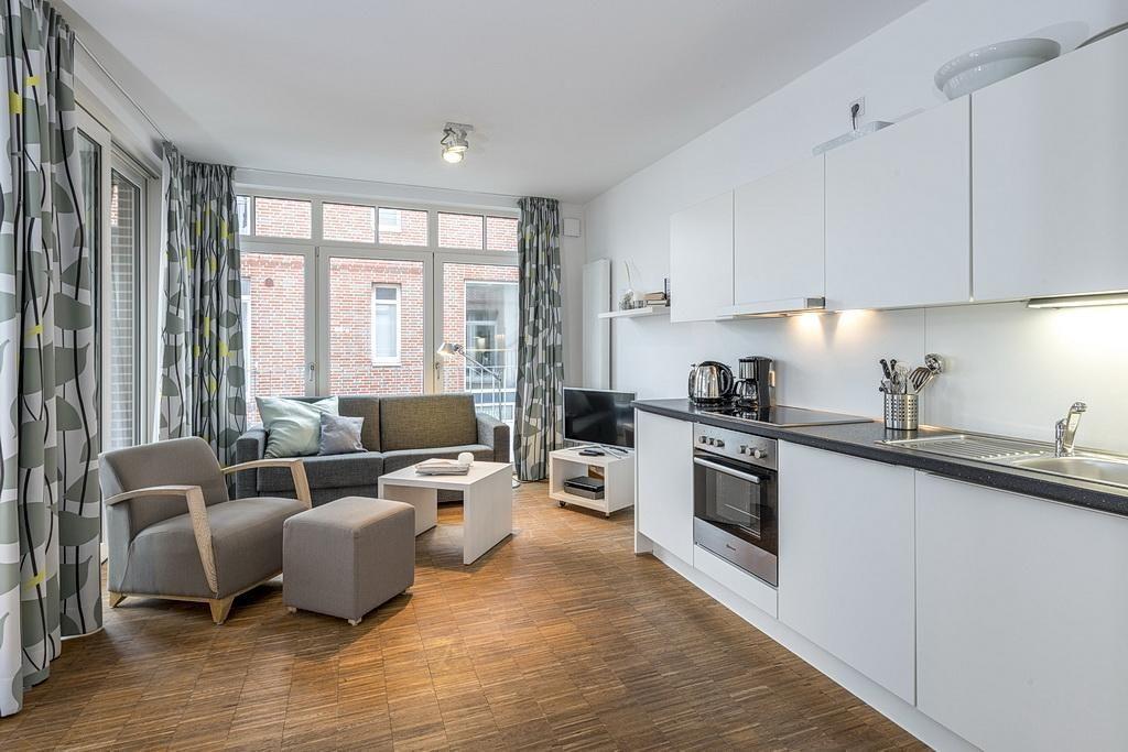Das barrierearme Apartment verfügt über kostenfreies WLAN und eine voll ausgestattete offene Küche mit Geschirrspüler, Gefrierfach, Kaffeemaschine, Toaster, Wasserkocher und Backofen. Das Schlafzimmer ist mit einem Doppelbett ausgestattet; im Wohnbereich befindet sich eine Doppelschlafcouch. Ein Kinderbett kann gegen Entgelt aufgestellt werden. Im modernen Badezimmer stehen euch eine große begehbare Dusche sowie ein Waschtisch mit Föhn und Kosmetikspiegel zur Verfügung. Auf der geschützten und sonnenreichen Loggia lässt es sich wunderbar entspannen.