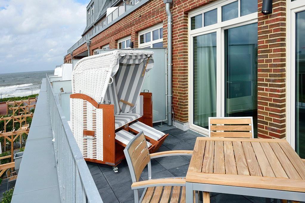 Modernes Ferienapartment auf Wangerooge mit Meerblick, Balkon und Strandkorb direkt am Inselstrand.