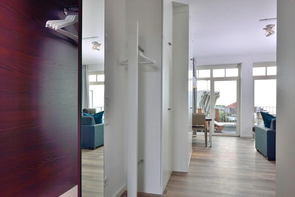 Das 42 m² große und moderne 1-Zimmer Apartment ist für bis zu 3 Personen geeignet. Besonders hervorzuheben ist der westseitig gelegene Balkon mit seitlichem Meerblick. Im eigenen Strandkorb lässt sich hier - bei Meeresrauschen - herrlich entspannen.