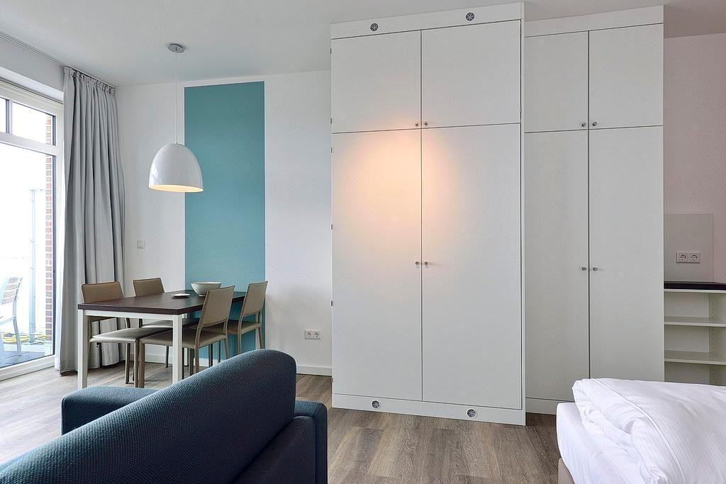 Das 42 m² große und moderne 1-Zimmer Apartment ist für bis zu 3 Personen geeignet. Besonders hervorzuheben ist der westseitig gelegene Balkon mit teilweise Meerblick. Im eigenen Strandkorb lässt sich hier - bei Meeresrauschen - herrlich entspannen.