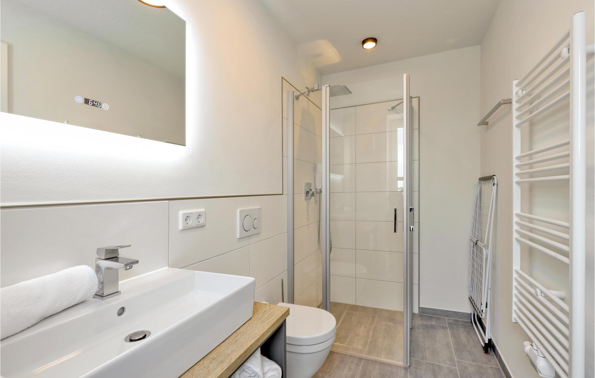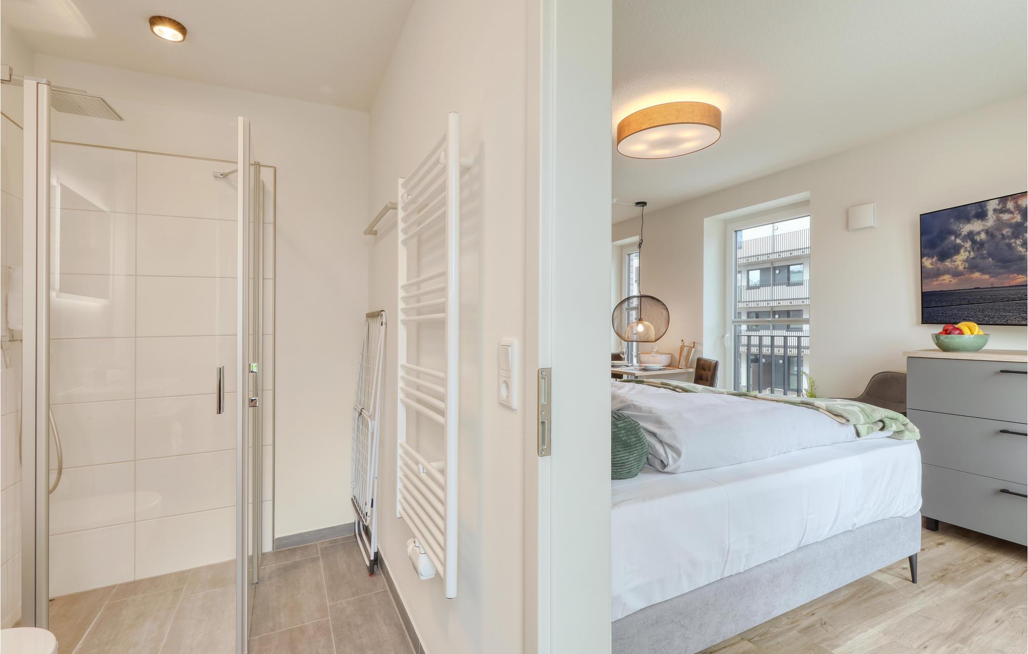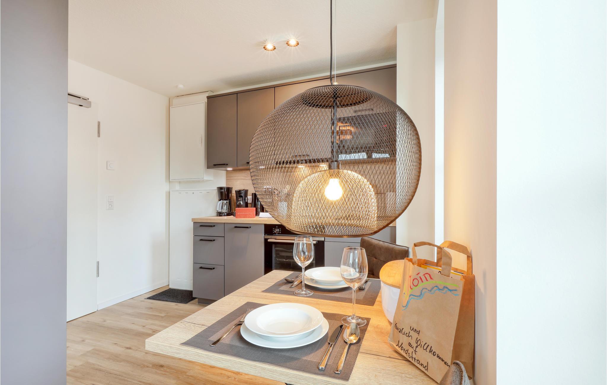 Herzlich willkommen auf Nordstrand, einer traumhaften Halbinsel an der schleswig-holsteinischen Nordseeküste im UNESCO Weltnaturerbe Wattenmeer. Das moderne Haus mit mehreren Ferienwohnungen ist ein wahres Juwel inmitten der Natur, die Lage direkt hinter dem Deich lässt das Herz eines jeden Nordseefans höherschlagen. Der moderne maritime Ausdruck der exklusiven Ferienwohnung versetzt Sie sofort in Urlaubsstimmung. Großzügige Fensterfronten lassen viel Tageslicht herein und bieten einen atemberaubenden Blick auf die umliegende Landschaft. Mit seinem Fokus auf Nachhaltigkeit ist das Ferienhaus der ideale Ort für Urlauber, die Wert auf Erholung in Einklang mit der Natur legen. Beginnen Sie Ihren Tag mit einem leckeren Frühstück im gemütlichen Wohnzimmer mit offener Küche.