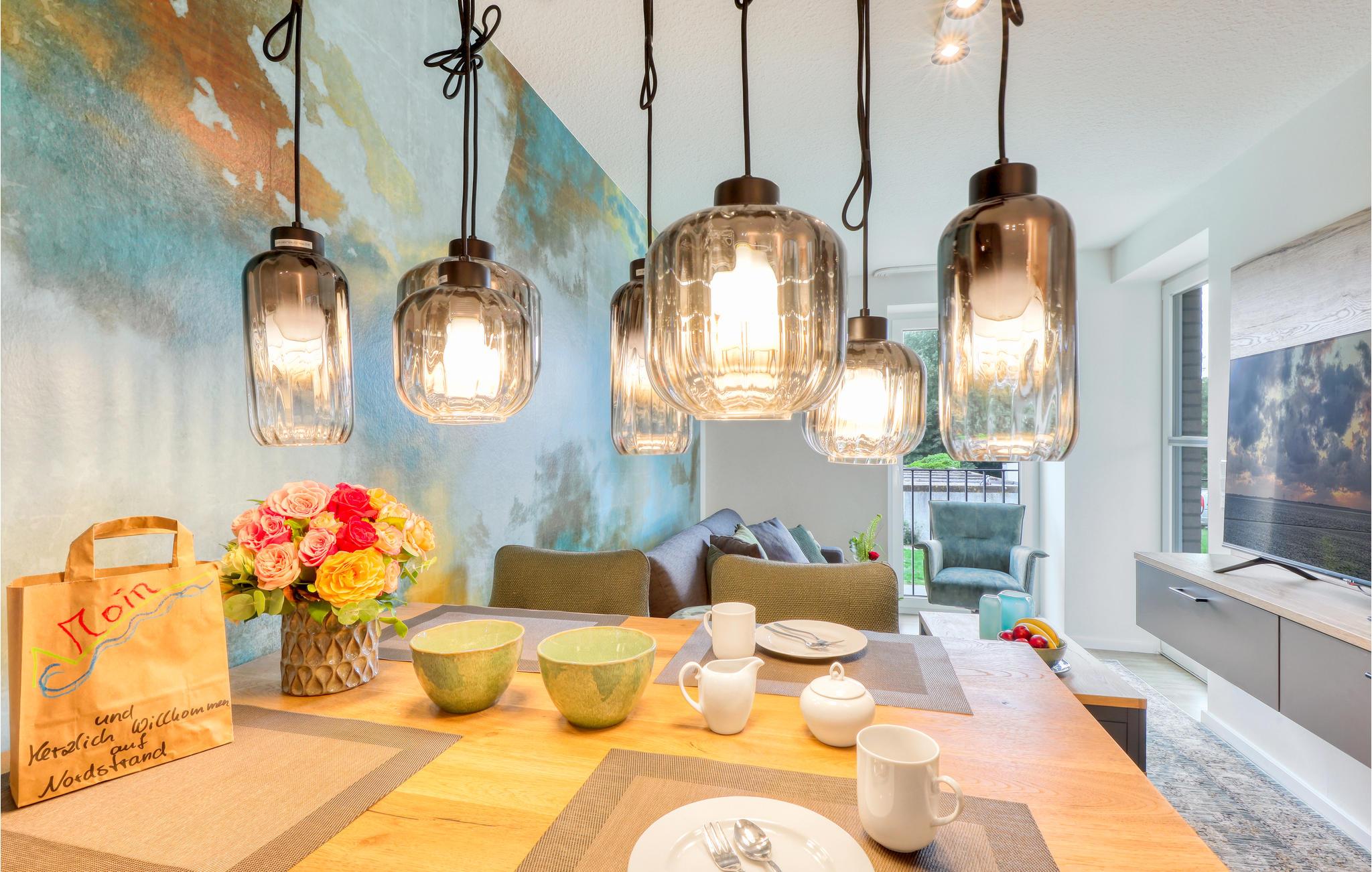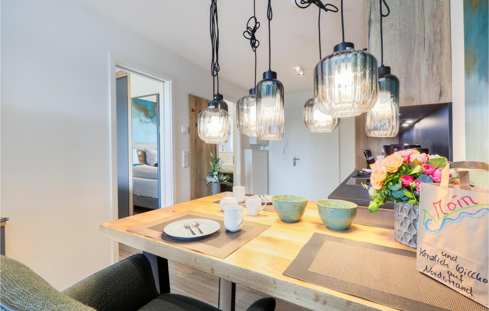 Moderne Ferienwohnung auf Nordstrand mit Meerblick, nachhaltigem Design und Nähe zur Natur für erholsame Urlaubstage.