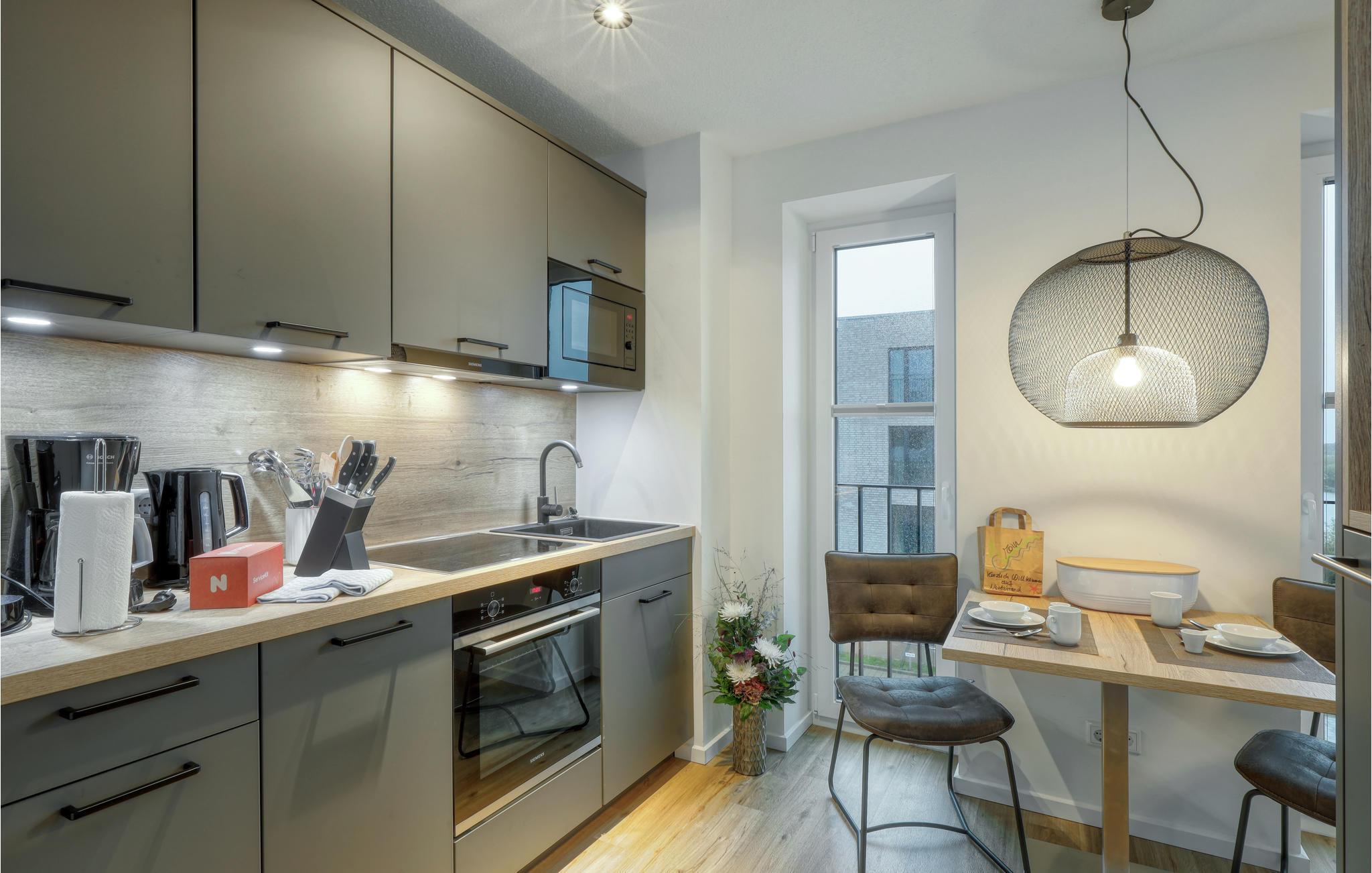 Herzlich willkommen auf Nordstrand, einer traumhaften Halbinsel an der schleswig-holsteinischen Nordseeküste im UNESCO Weltnaturerbe Wattenmeer. Das moderne Haus mit mehreren Ferienwohnungen ist ein wahres Juwel inmitten der Natur, die Lage direkt hinter dem Deich lässt das Herz eines jeden Nordseefans höherschlagen. Der moderne maritime Ausdruck der exklusiven Ferienwohnung, die sich ideal für eine erholsame Auszeit zu zweit eignet, versetzt Sie sofort in Urlaubsstimmung. Großzügige Fensterfronten lassen viel Tageslicht herein und bieten einen atemberaubenden Blick auf die umliegende Landschaft, den Sie schon beim Aufwachen genießen können. Mit seinem Fokus auf Nachhaltigkeit ist das Ferienhaus der ideale Ort für Urlauber, die Wert auf Erholung in Einklang mit der Natur legen. Beginnen Sie Ihren Tag mit einem leckeren Frühstück im gemütlichen Wohnzimmer mit offener Küche.
