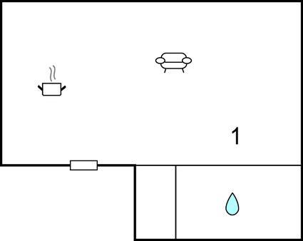 Wohnraum/Küche - 2 Schlafmöglichkeiten. (Doppelbett(en)).