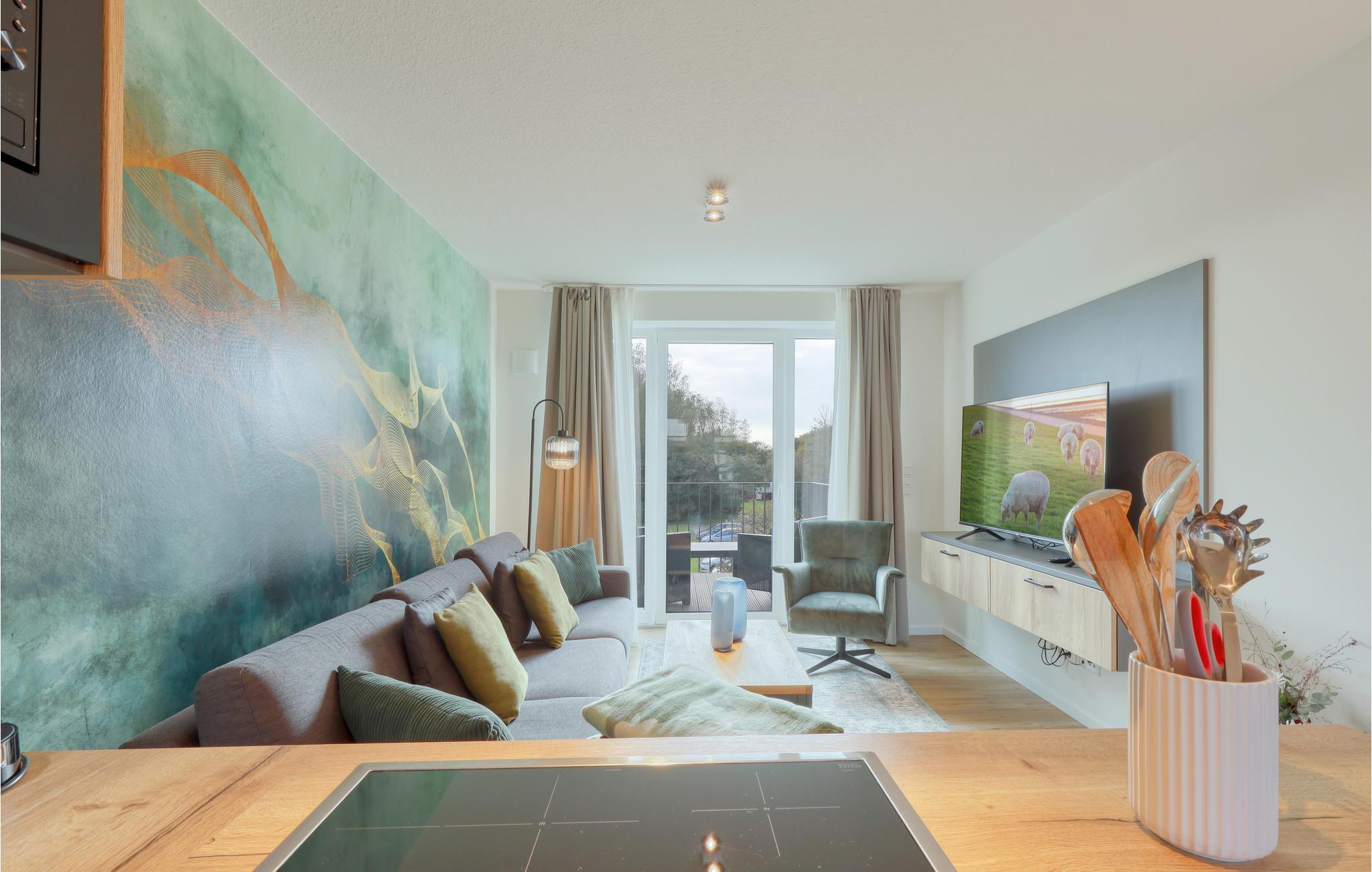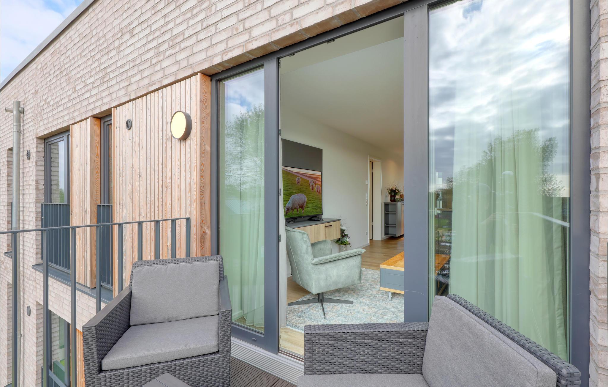 Stilvolle Ferienwohnung auf Nordstrand mit Meerblick, modernem Komfort und nachhaltiger Bauweise für erholsame Urlaubstage.