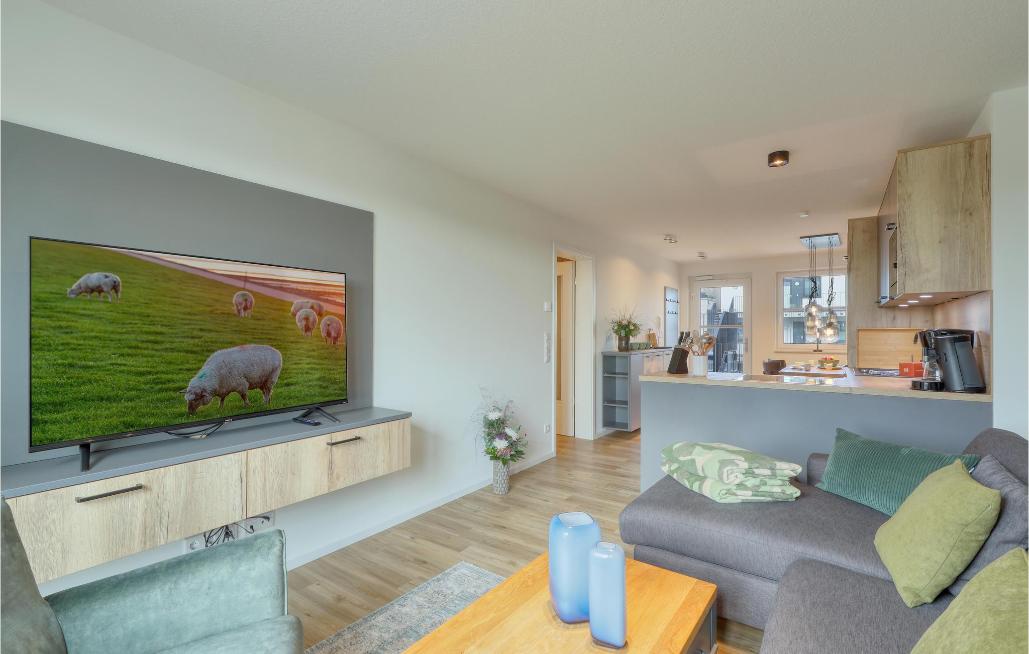 Herzlich willkommen auf Nordstrand, einer traumhaften Halbinsel an der schleswig-holsteinischen Nordseeküste im UNESCO Weltnaturerbe Wattenmeer. Das moderne Haus mit mehreren Ferienwohnungen ist ein wahres Juwel inmitten der Natur, die Lage direkt hinter dem Deich lässt das Herz eines jeden Nordseefans höherschlagen. Der moderne maritime Ausdruck der exklusiven Ferienwohnung versetzt Sie sofort in Urlaubsstimmung. Bodentiefe Fenster lassen viel Tageslicht herein und bieten einen schönen Blick ins Freie. Mit seinem Fokus auf Nachhaltigkeit ist das Ferienhaus der ideale Ort für Urlauber, die Wert auf Erholung in Einklang mit der Natur legen. Beginnen Sie Ihren Tag mit einem leckeren Frühstück im gemütlichen Wohnzimmer mit offener Küche oder genießen Sie den ersten Kaffee auf dem Balkon.