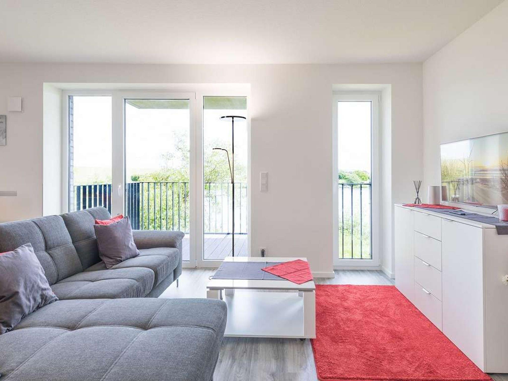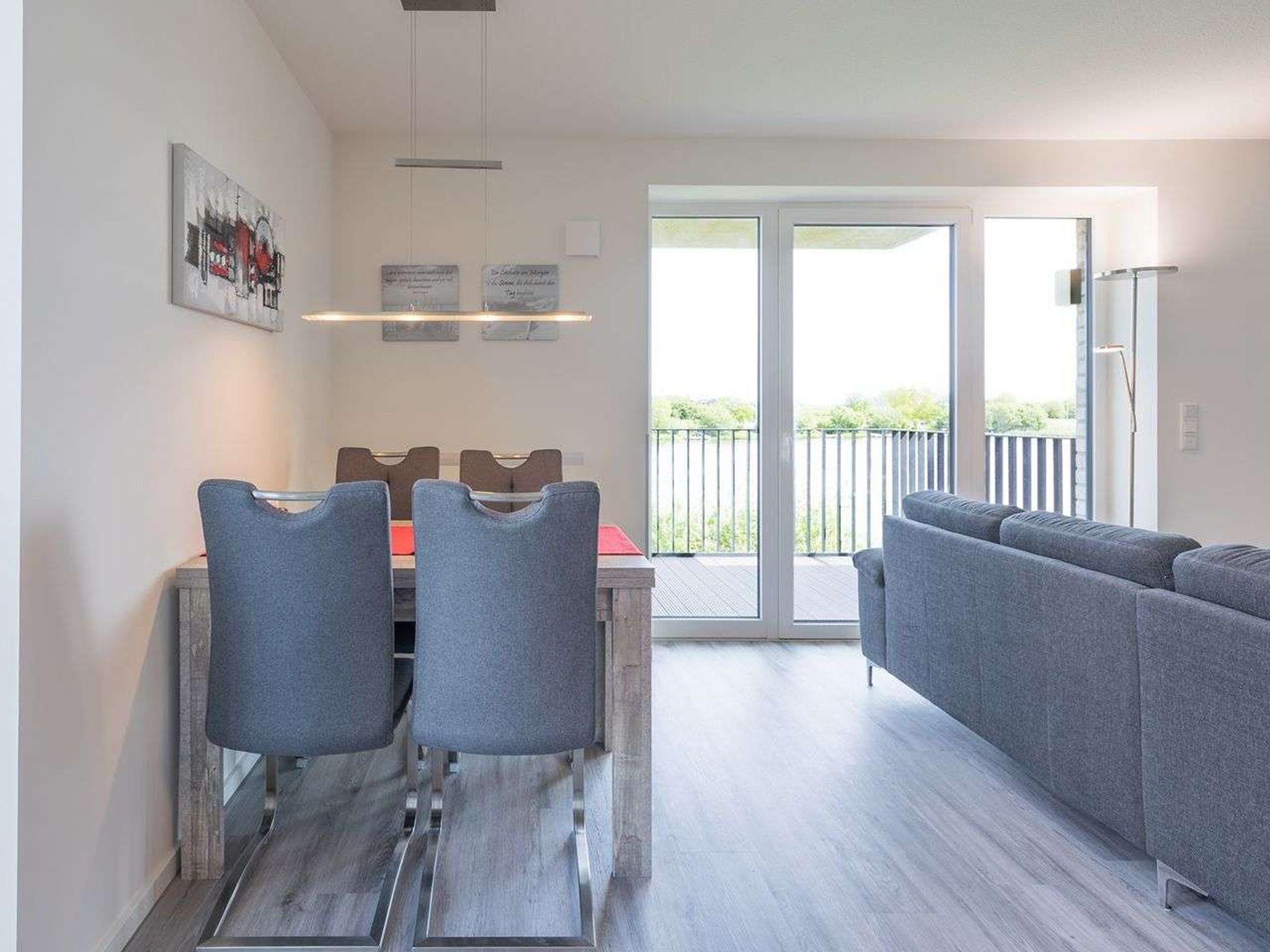 "Auszeit am Deich", 3-Zimmer-Wohnung 75 m2 im 1. Stock. Sehr stilvoll und gemütlich eingerichtet: Wohn-/Esszimmer mit Sat-TV (Flachbildschirm). Ausgang zum Balkon. 2 Zimmer, jedes Zimmer mit 1 Doppelbett (1 x 160 cm, Länge 200 cm), Dusche/WC. Offene Küche (4 Kochplatten, Backofen, Geschirrspüler, Toaster, Wasserkocher, Mikrowelle, elektrische Kaffeemaschine) mit Esstisch. Fussbodenheizung. Sehr schöne Panoramasicht auf das Meer. Zur Verfügung: Waschmaschine, Wäschetrockner, Fliegengitter, Haartrockner. Internet (Wireless LAN). Blu-Ray Player. Parkplatz. Bitte beachten: Nichtraucher-Unterkunft.
