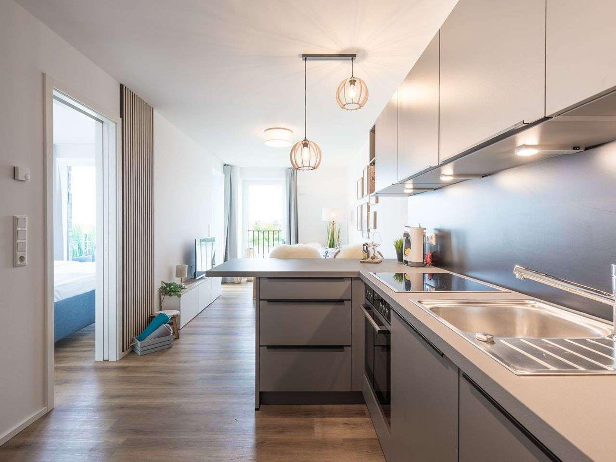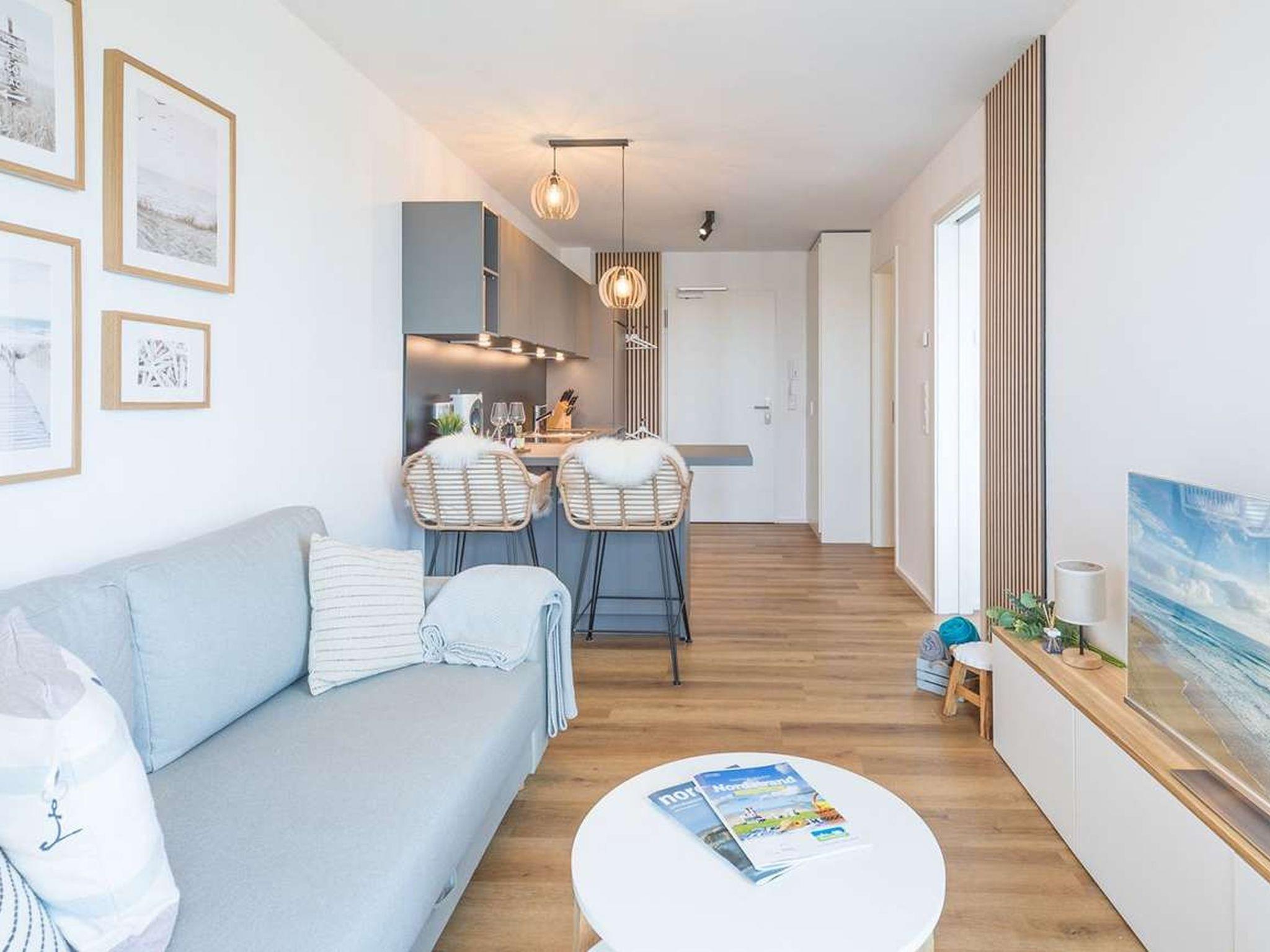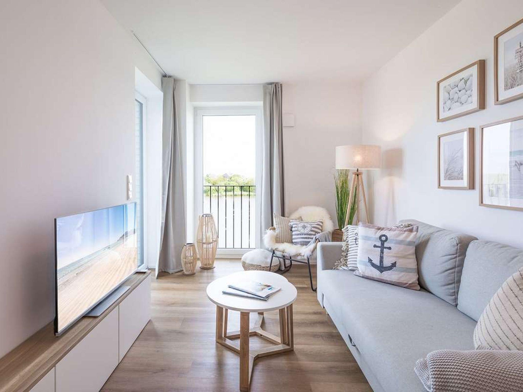 Komfortable 2-Zimmer-Wohnung mit Balkon und Seeblick auf Nordstrand, ideal für erholsame Tage am Wasser.