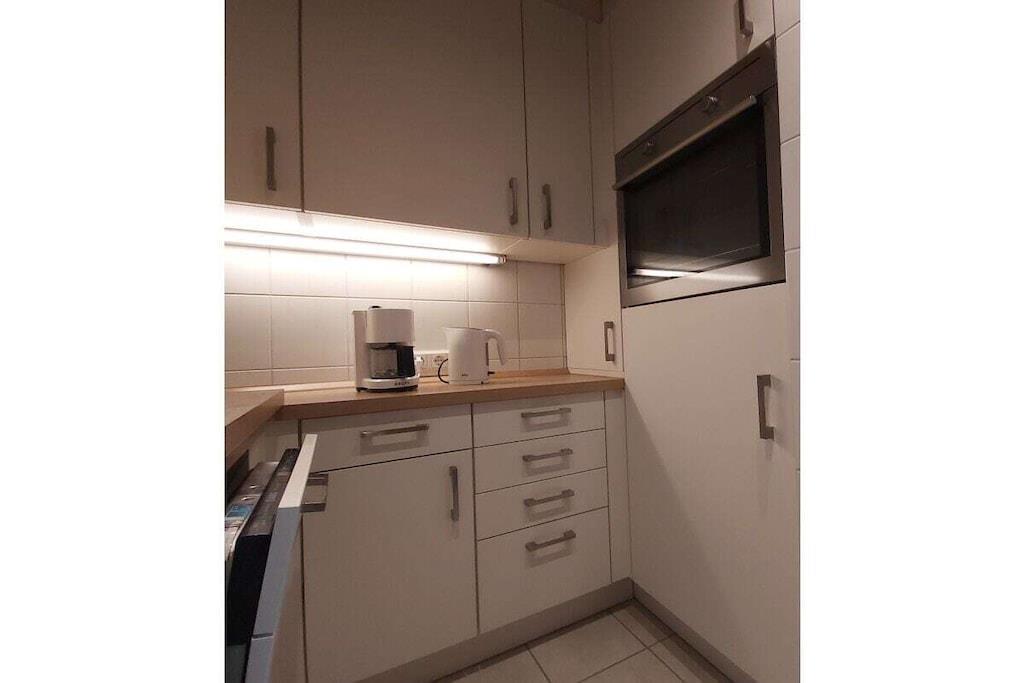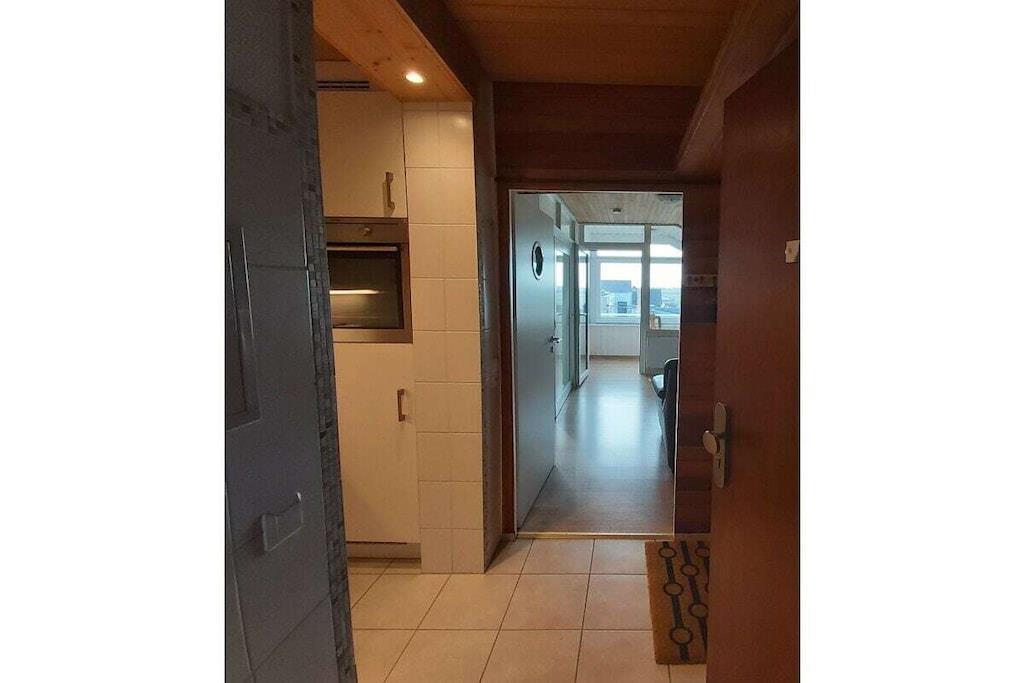 Freundliche moderne, 2 Zimmer Wohg. + kleinem verglasten Balkon mit Schiebefenster, neues Duschbad, Einbauküche, 2 Platten Induktion, Backofen, Kühlschrank, Schlafzimmer mit Doppelbett, Sitzecke und Fliegenfenster, Wohnraum mit TV, Radio und Internet (W-lan) gute feste Möbel, Essecke.