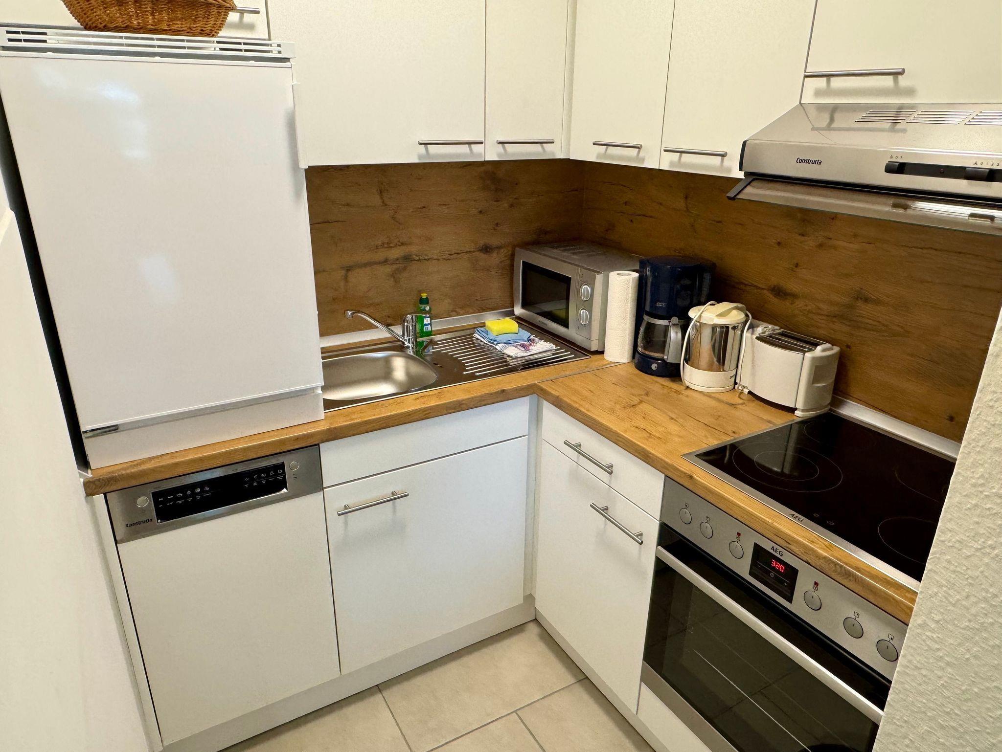 Das Appartement, im Sommer 2025 komplett renoviert, ist für 3 Personen geeignet und verfügt über ein Wohn-/Schlafzimmer mit Doppelbett. Vom Wohnzimmer aus geht es auf die möblierte Terrasse mit Blick auf den anliegenden See und zum zweiten Schlafzimmer mit Einzelbett. Die Küche ist mit einer komplett ausgestatteten Einbauküche eingerichtet. Weiterhin verfügt das Appartement über ein Duschbad. Für Ihren PKW steht ein eigener Stellplatz auf dem Parkplatz zur Verfügung. Zum Nordseedeich sind es nur rund 150m, ebenso wie zum Bäcker. Restaurants sind fussläufig in ungefähr 500m zu erreichen. Bis zum Hafen Strucklahnungshörn, von wo die Ausflugsschiffe in das Wattenmeer abfahren und frische Krabben und Fisch gekauft werden kann, ist nur rund 1500m entfernt.