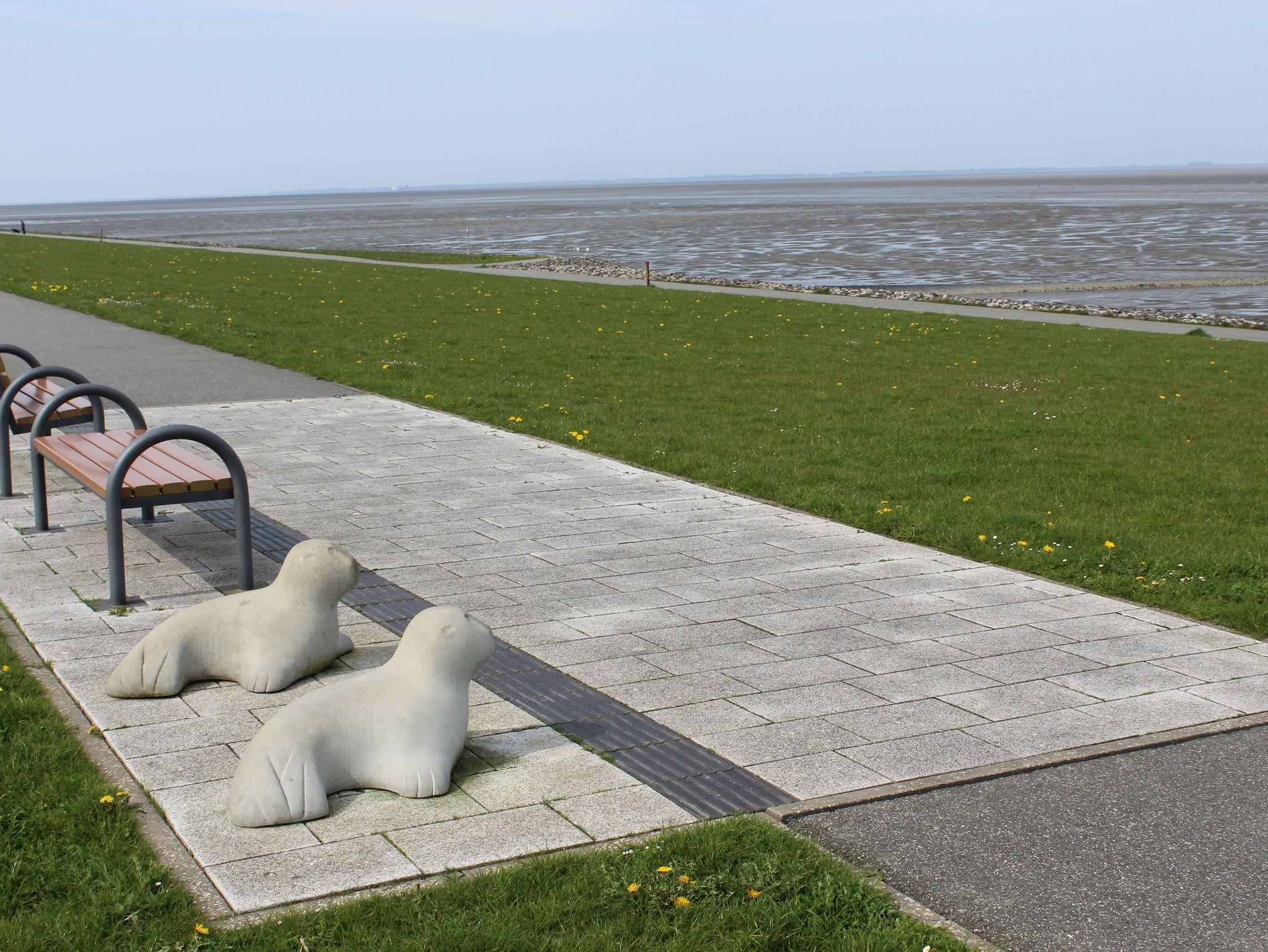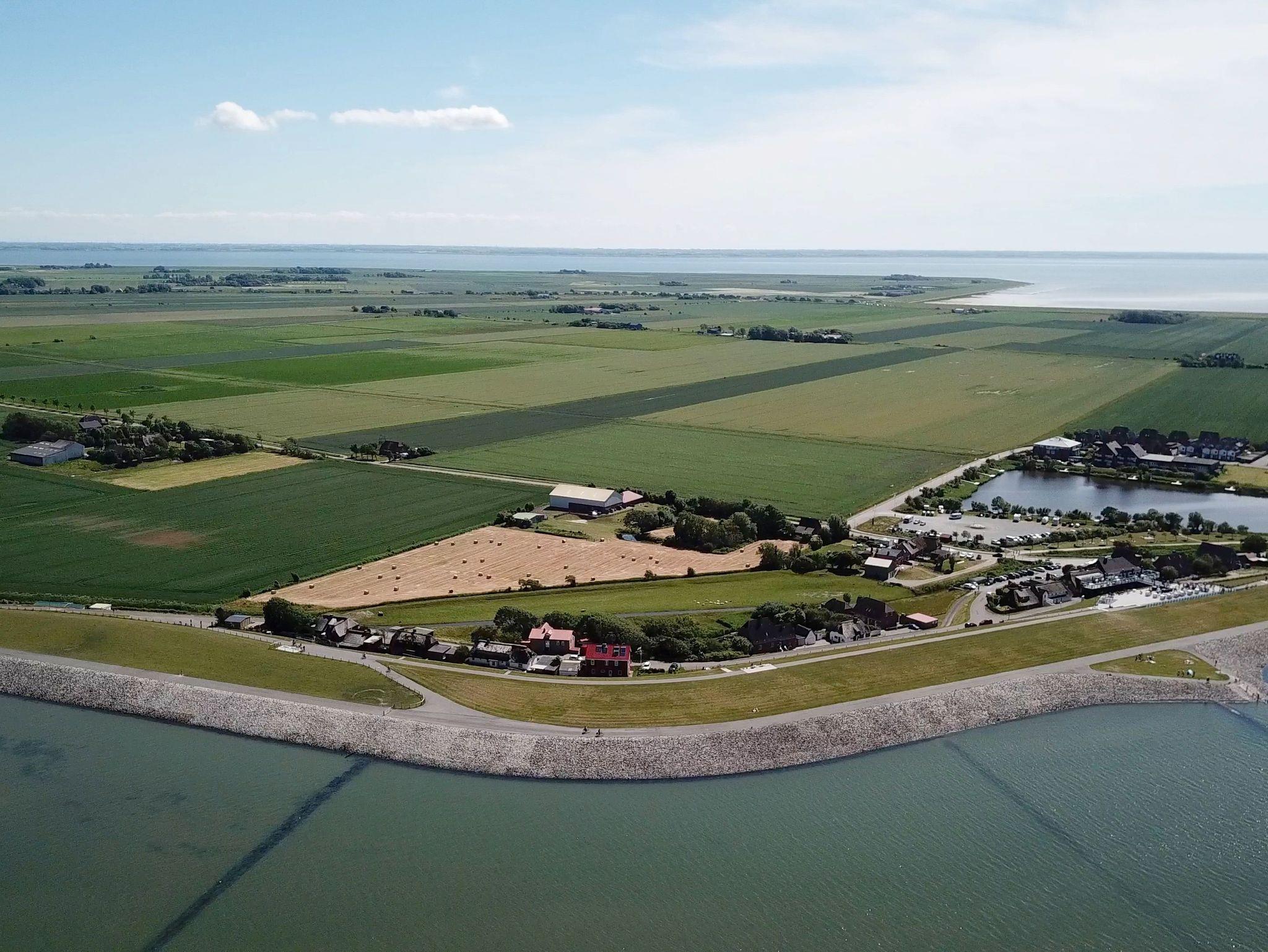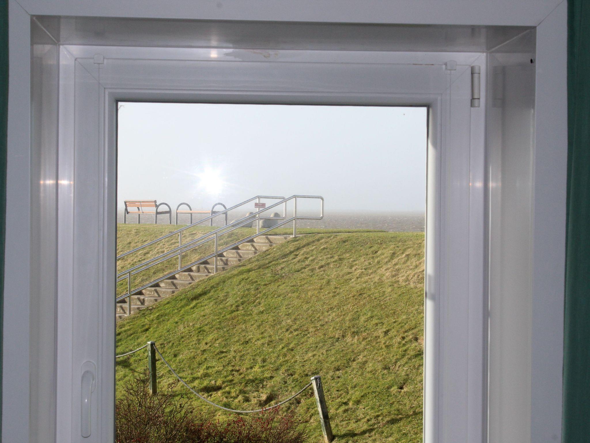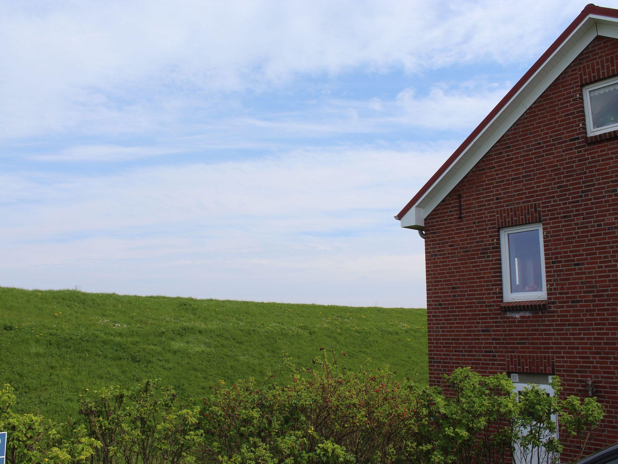 Direkt am Aussendeich gelegen ist das Kapitänshus. Im ersten Stock des Hauses liegt die Ferienwohnung Westwind. Von der Wohnung aus können Sie über den Deich auf die Halligen, die Insel Pellworm und die weite Nordsee blicken.