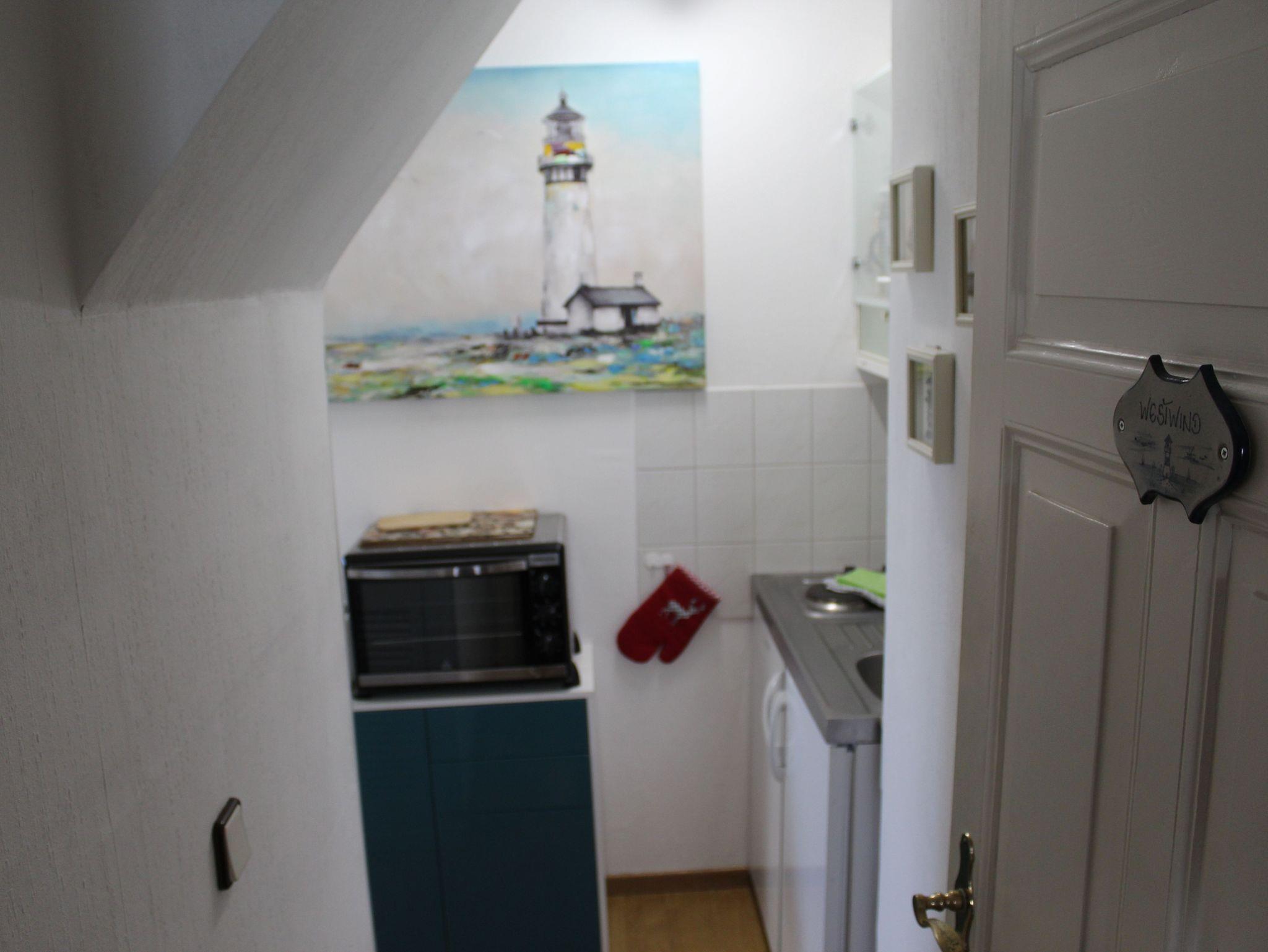 Eingerichtet ist die 38qm große Wohnung für zwei Personen. Das Schlafzimmer ist ausgestattet mit einem Doppelbett und Kleiderschrank. Weiterhin hat die Wohnung eine Wohnküche mit Esstisch direkt am Fenster, für den unbeschwerten Ausblick, von dort aus geht es auch in das Duschbad