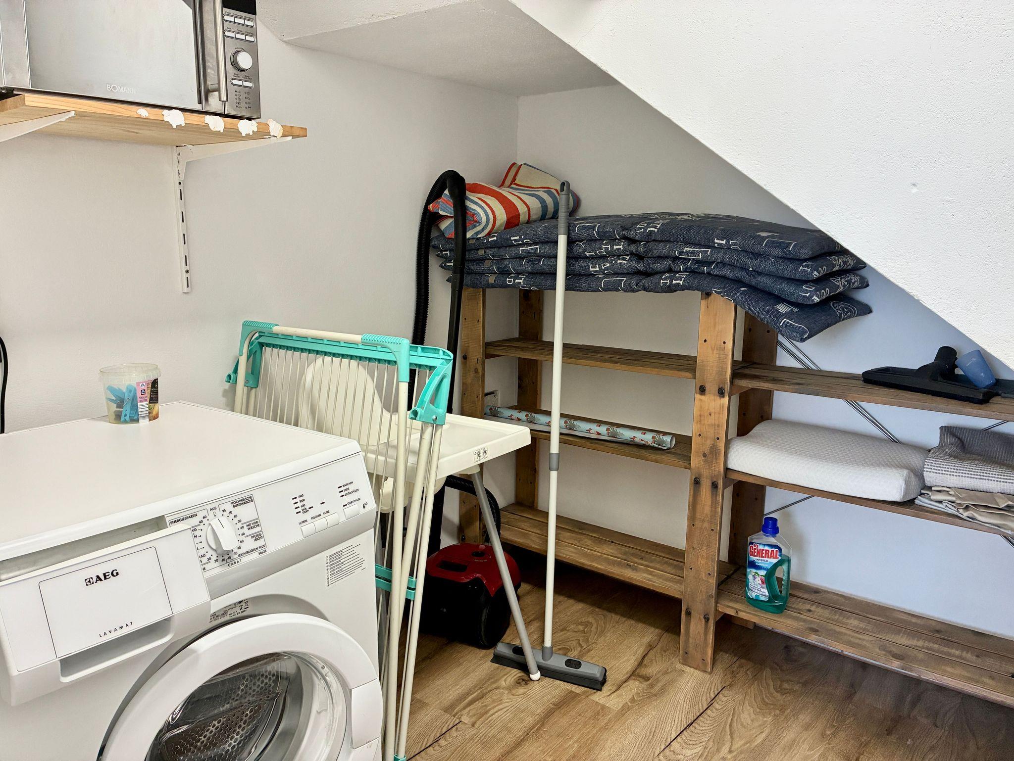 Eine Waschmaschine steht im Haus zur Verfügung. Fahrräder können im abschließbaren Schuppen im Garten sicher untergestellt werden. Ein eigener Parkplatz gehört ebenfalls zum Haus.