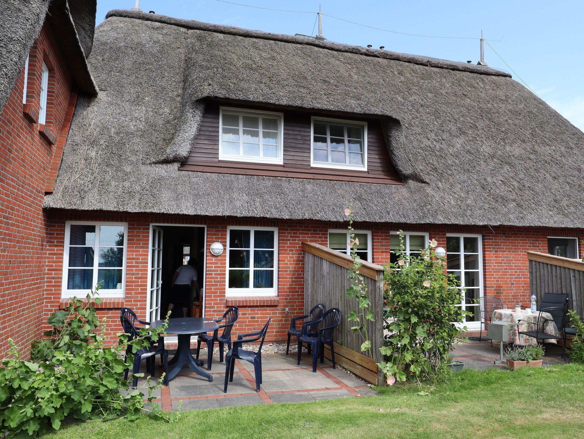 Friesenhof Nordwind auf Nordstrand: Frisch renoviertes Reetdachhaus mit großem Garten und Strandkorb für erholsame Urlaubstage.