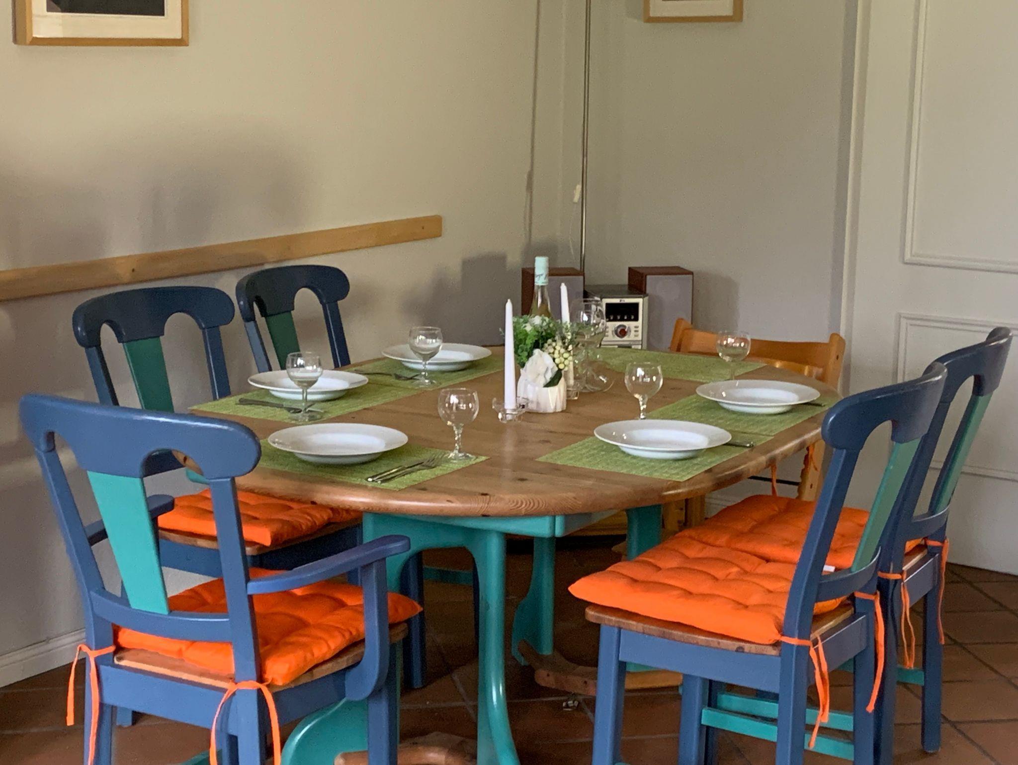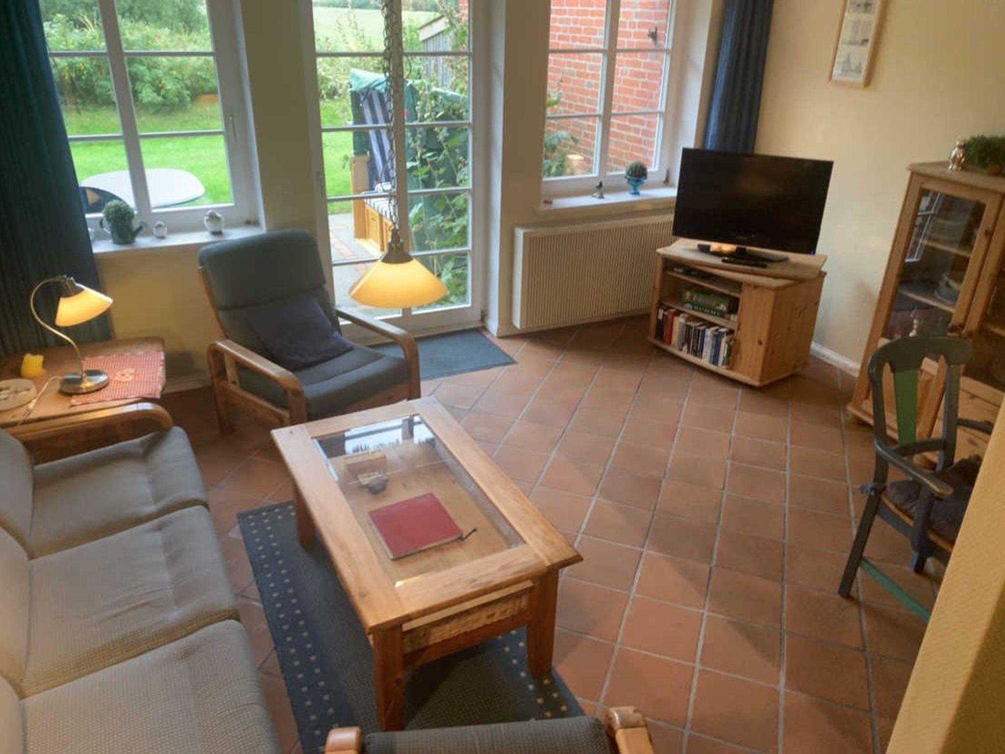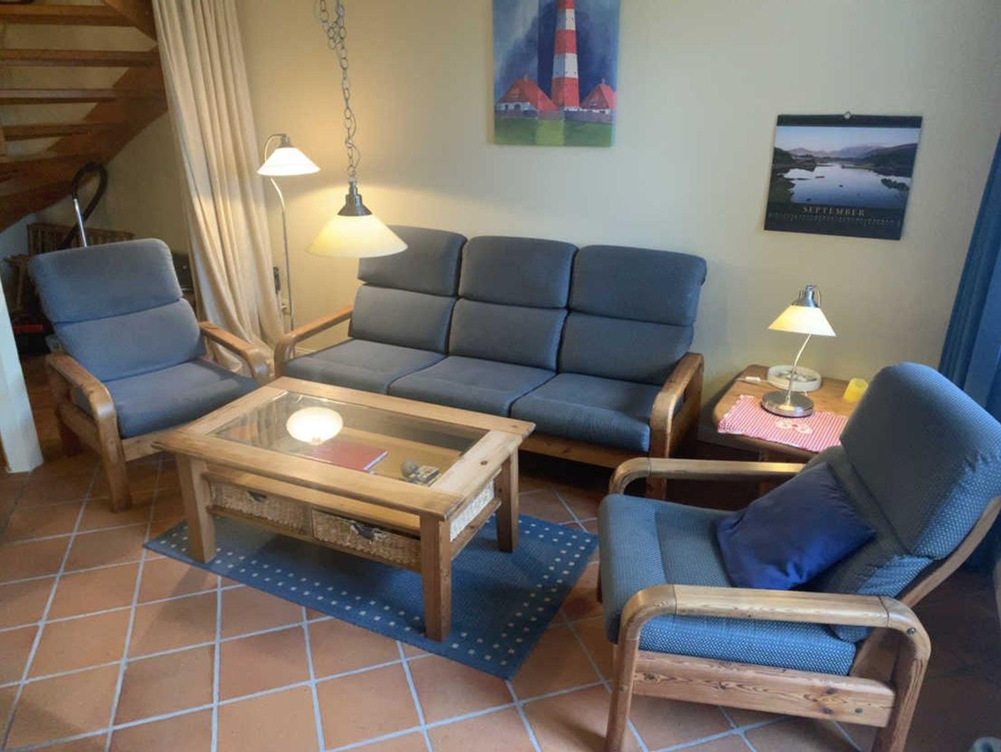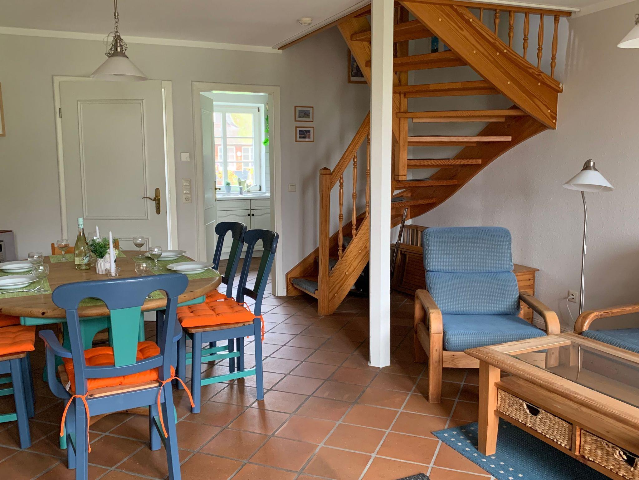 Der Friesenhof ist ein im typisch friesischen Stil erbautes Reetdachgebäude mit eigenständigen Hausteilen, gelegen im Kurzentrum Nordstrand. Der im Sommer 2022 frisch renovierte Hausteil ist ca. 90qm groß und ist für bis zu 6 Personen geeignet. Im Erdgeschoss befinden sich das geräumige Wohnzimmer mit Wohn- und Essbereich, die seperate komplett ausgestattet Einbauküche mit Spülmaschine, Mikrowelle usw. Vom Flur aus ist ein zusätzliches Gäste-WC zu erreichen, und vom Wohnzimmer aus geht es auf die möblierte zum Süden liegende Außenterrasse mit eigenem Strandkorb. Zwei Schlafzimmer, eines mit einem Doppelbett und ein weiteres mit zwei Einzelbetten, sowie Dusche/WC befinden sich im 1. Stock, ein drittes Schlafzimmer mit ebenfalls zwei Einzelbetten im oberen als Galerie ausgebauten Giebelzimmer. Das Haus verfügt über einen Glasfaseranschluss.