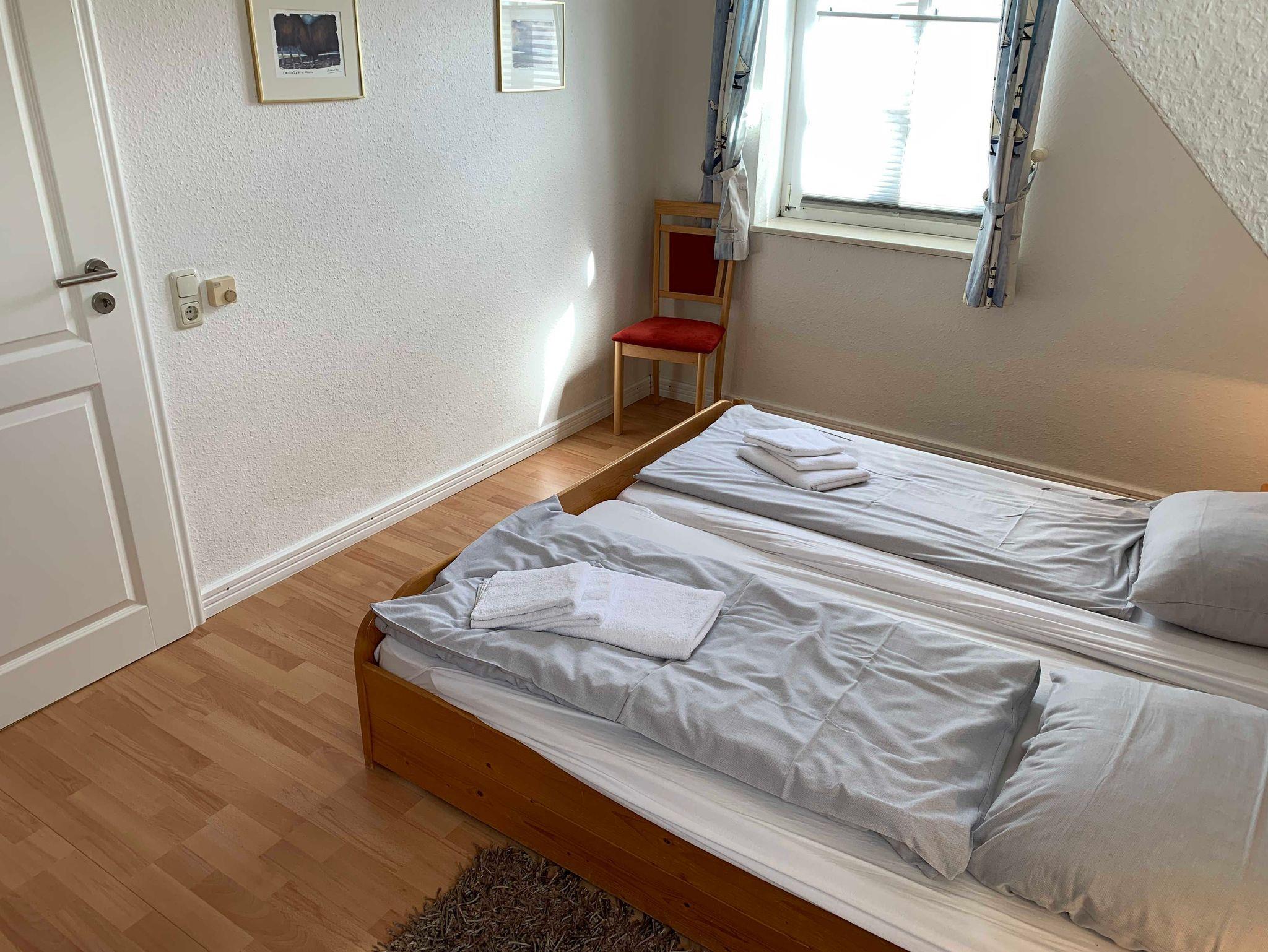 Das Haus Am Kurhaus 9 bietet komfortablen Platz für 2 bis 4 Personen. Im Obergeschoss befinden sich zwei gemütliche Schlafzimmer ? eines mit einem Doppelbett und ein weiteres mit zwei Einzelbetten. Auf dieser Etage liegt auch das Badezimmer mit Dusche und WC.