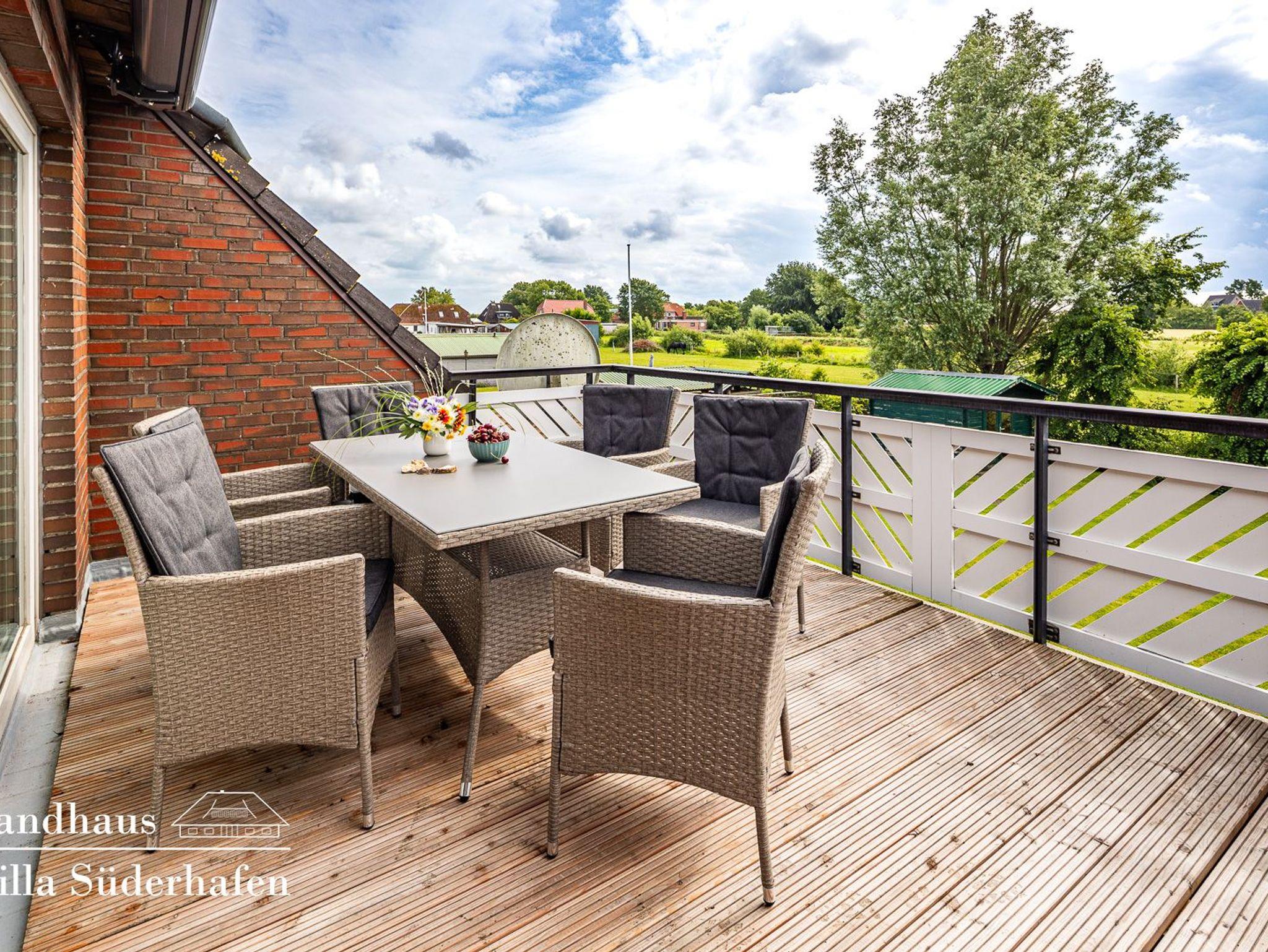 Die Landhaus Villa Süderhafen bietet mit drei separaten Schlafbereichen und eigenem Bad perfekte Privatsphäre für Familie und Freunde.