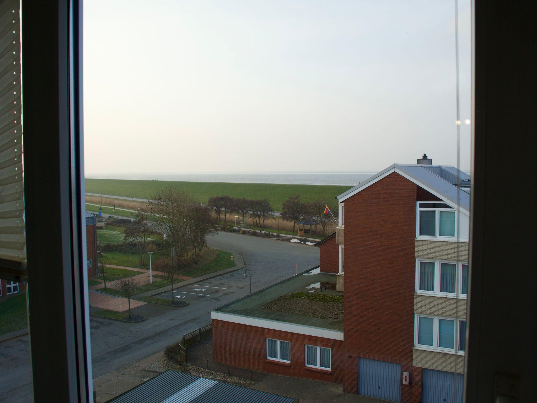 Die Wohnung Meerblick 57 liegt im vierten Stock des Hauses und eröffnet einen freien Blick über den Deich auf das Wattenmeer, der dieser Wohnung ihren besonderen Charakter verleiht. Das Appartement wurde im Jahr 2014 modernisiert und ist bequem mit dem Aufzug erreichbar.