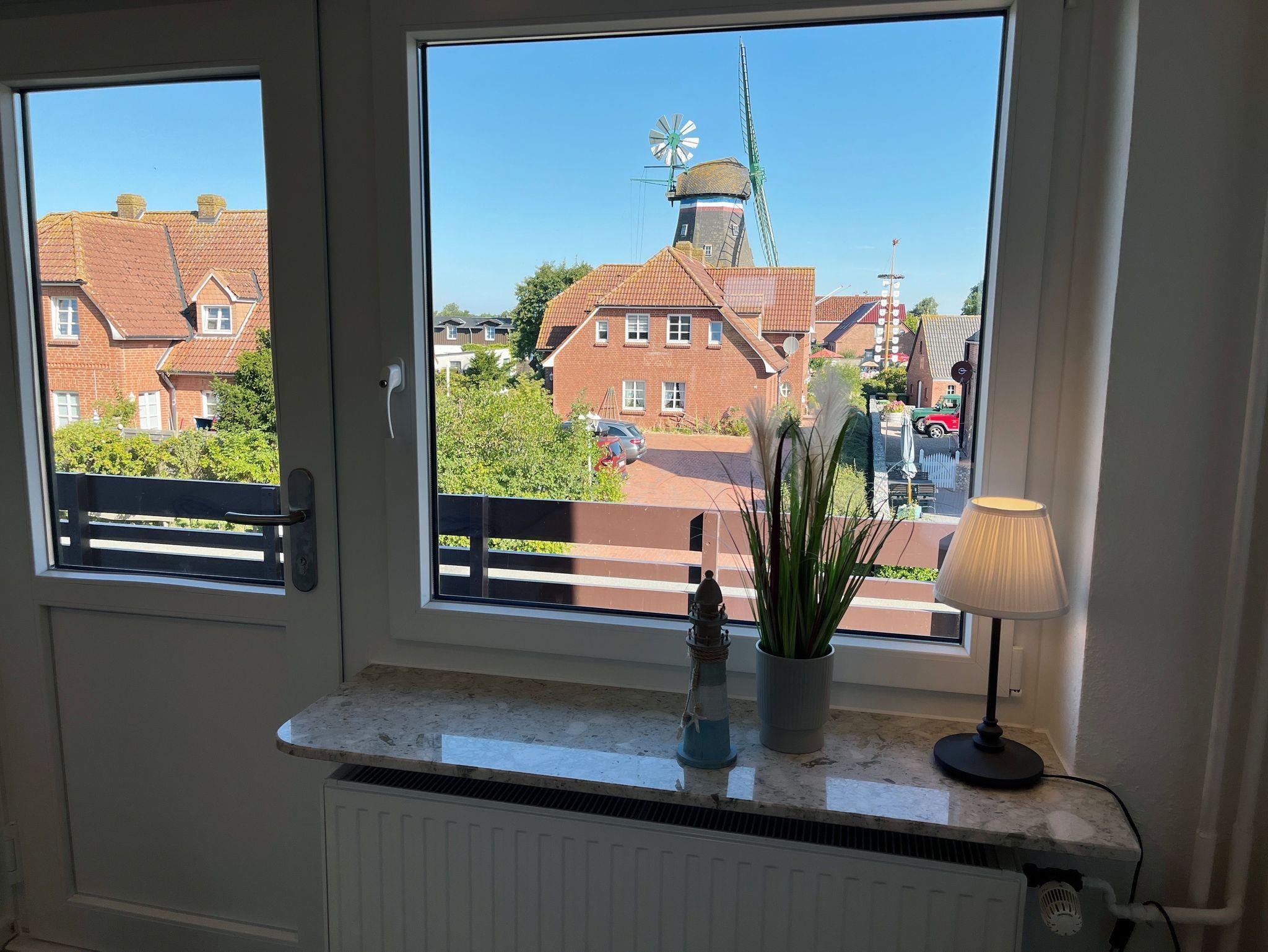 Gemütliche Ferienwohnung Haus Lith am Deich mit Balkon und Blick auf den Süderhafen, nur 200 Meter von der Badestelle entfernt.