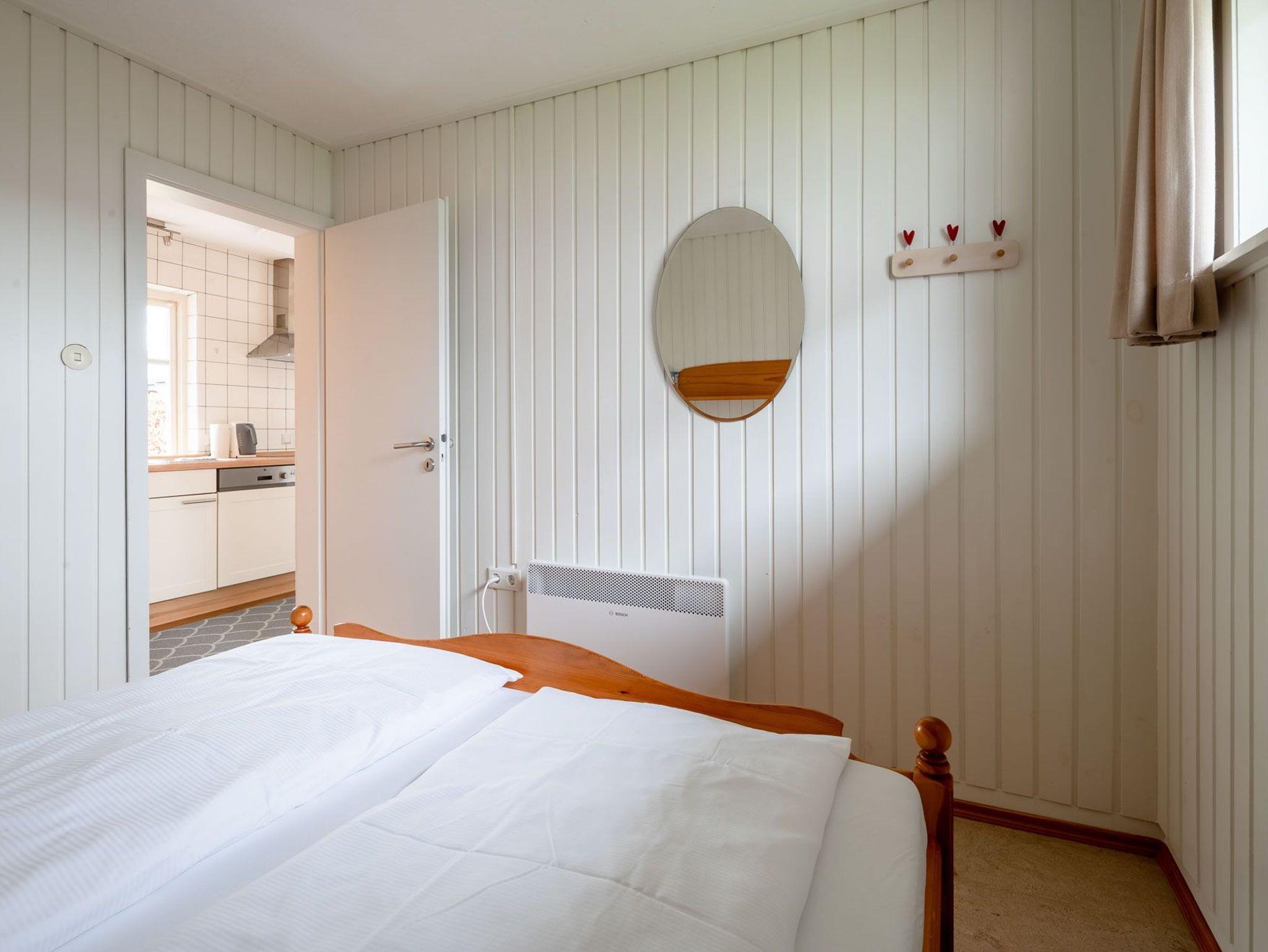 Erleben Sie einen erholsamen Urlaub in Haus Uwe, einem eingeschossigen Ferienhaus für bis zu 4 Personen. Das Haus verfügt über ein Wohnzimmer, zwei Schlafzimmer, eine Küche und ein Duschbad mit skandinavisch-rustikalem Interieur und Vollholzmöbeln, die je nach Jahreszeit ihre Farben wechseln. Ein Gaskaminofen im Wohnzimmer sorgt für wohlige Wärme. Die Einbauküche ist mit Herd/Ceranfeld, Backofen, Spülmaschine, Kaffeemaschine, Wasserkocher und Toaster ausgestattet.