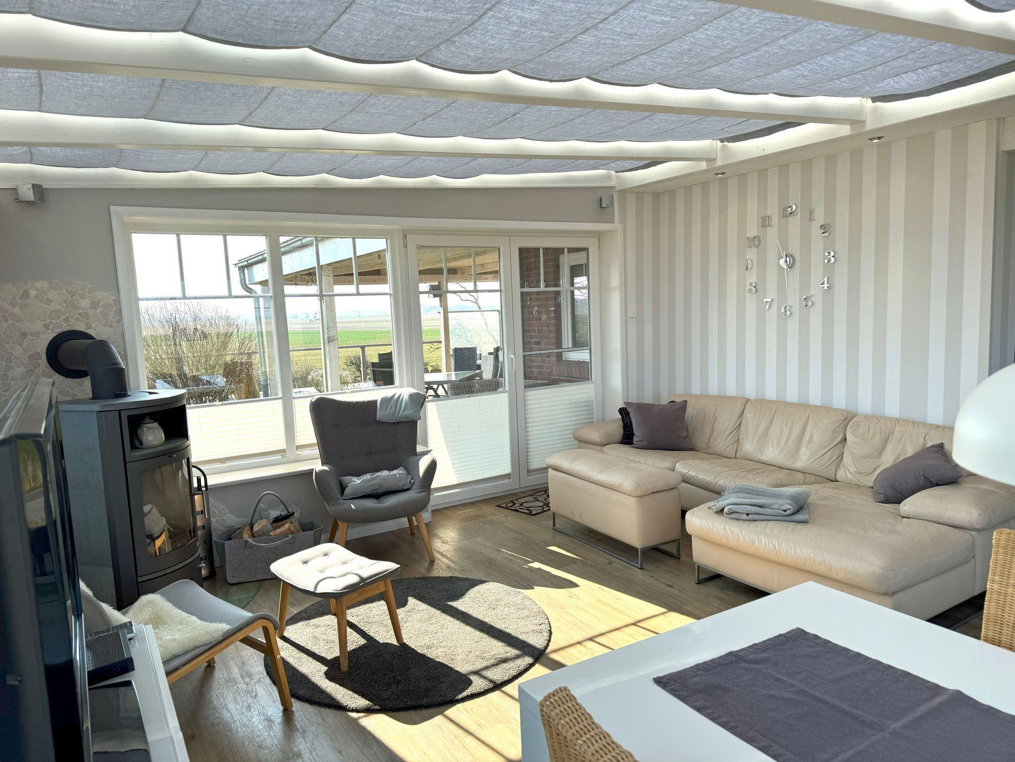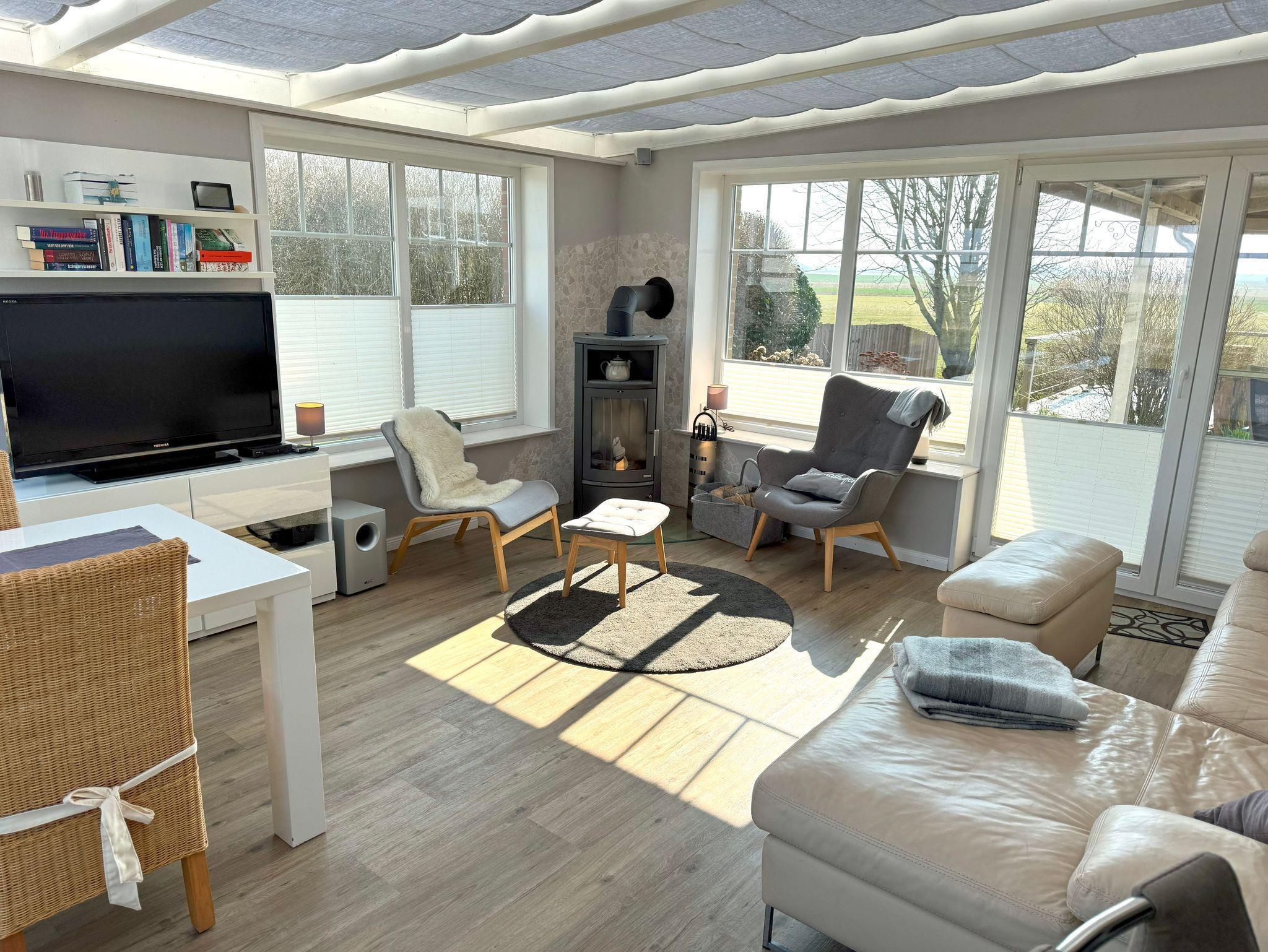 Gemütliches Ferienhaus auf Nordstrand mit Kamin, Garten, Terrasse und strandnaher Lage für erholsame Urlaubstage.