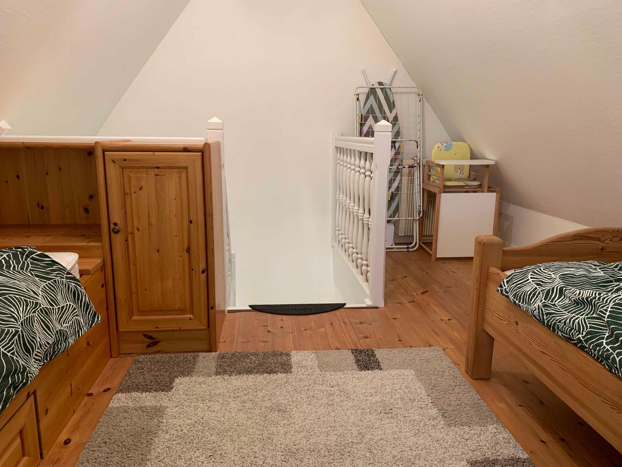 Im Obergeschoss befinden sich zwei Schlafzimmer ? eines mit einem Doppelbett und ein weiteres mit zwei Einzelbetten ? sowie ein modernes Bad mit Dusche und WC. Im Dachgeschoss lädt ein offenes Giebelzimmer in Galerieform mit zwei weiteren Einzelbetten zum Verweilen ein.