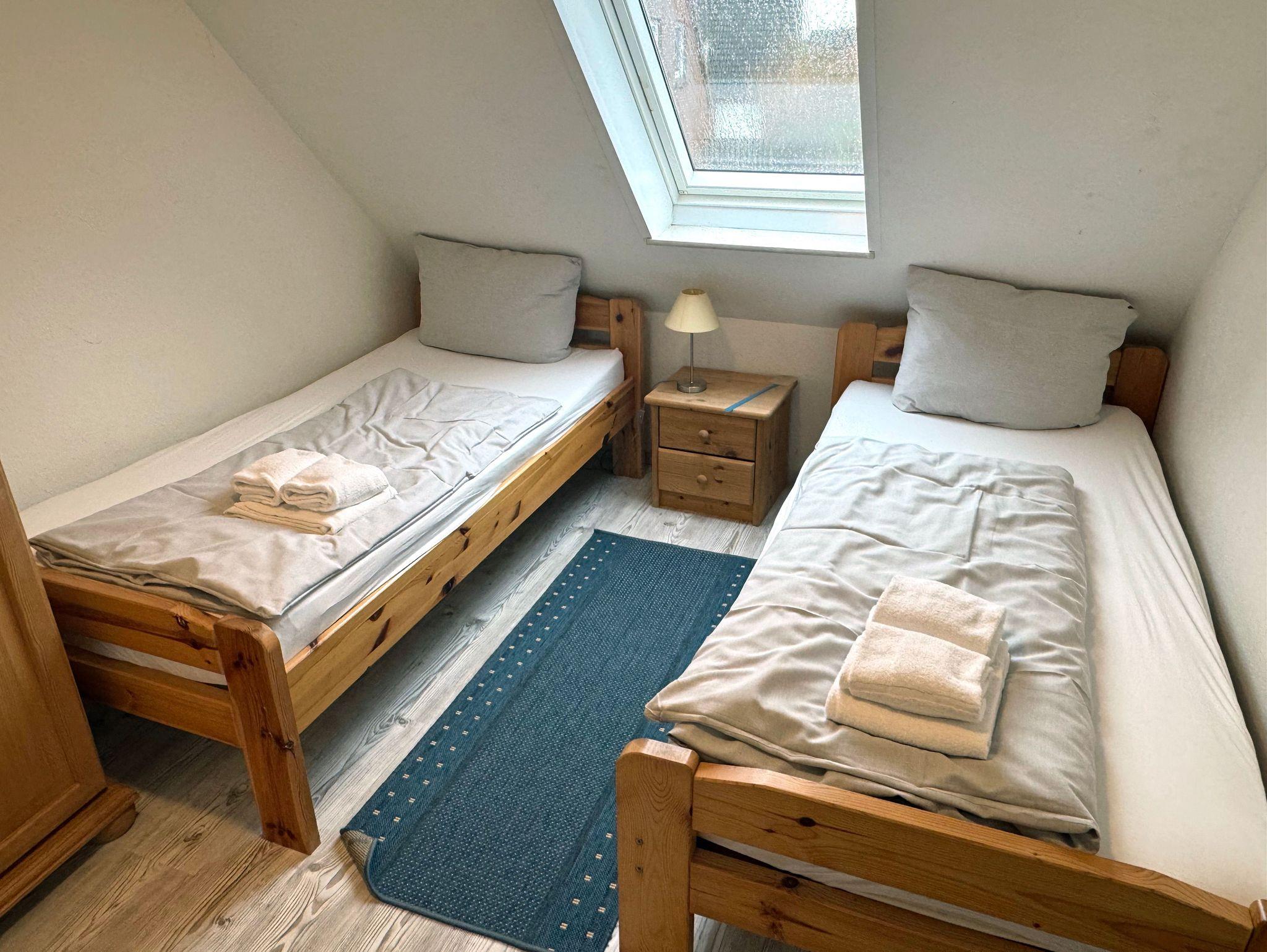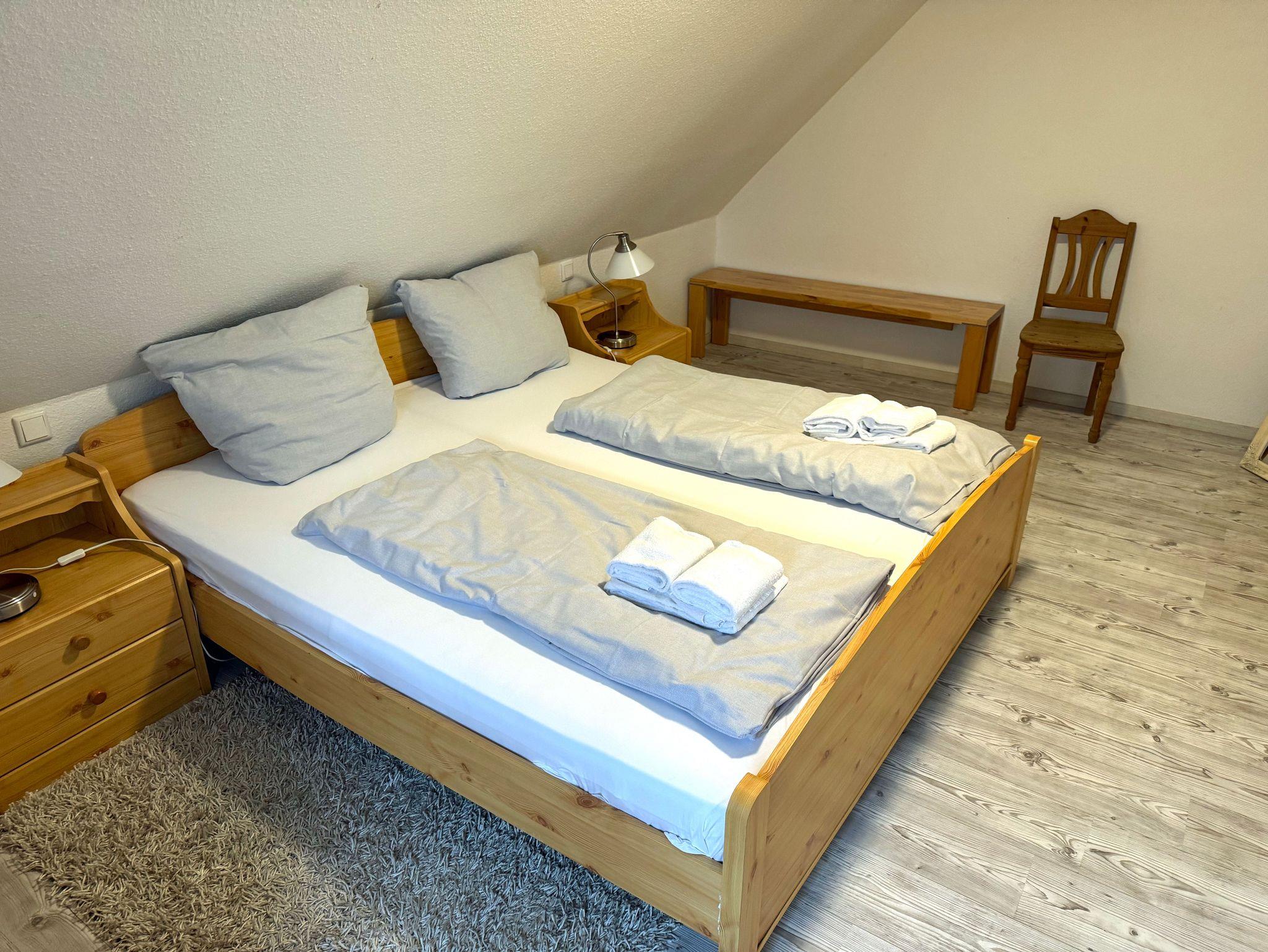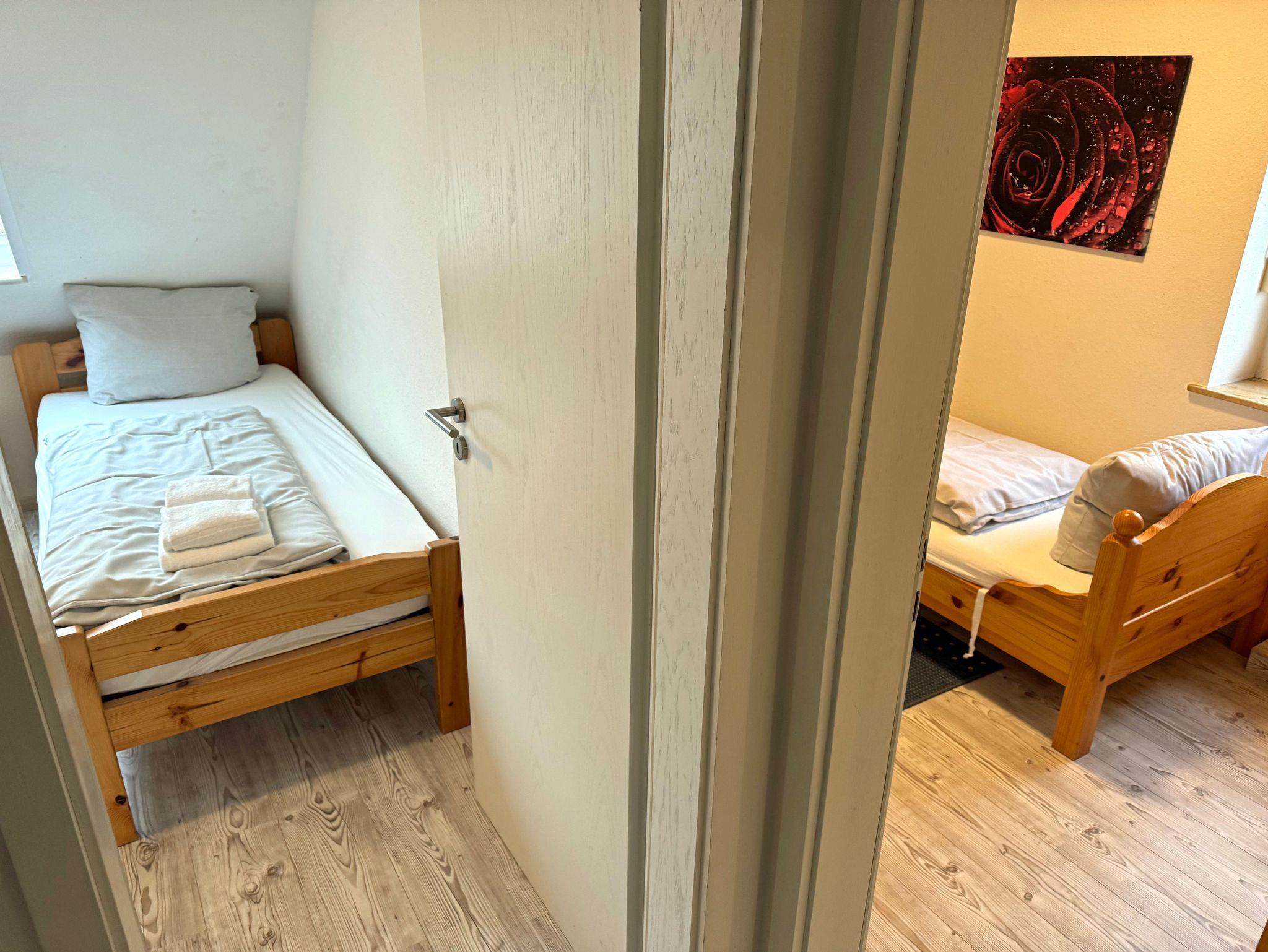 Im Obergeschoss befinden sich drei komfortable Schlafzimmer: Ein Zimmer mit einem Doppelbett sowie zwei weitere Zimmer mit jeweils zwei Einzelbetten. Zudem steht Ihnen auf dieser Etage ein zweites Badezimmer zur Verfügung.