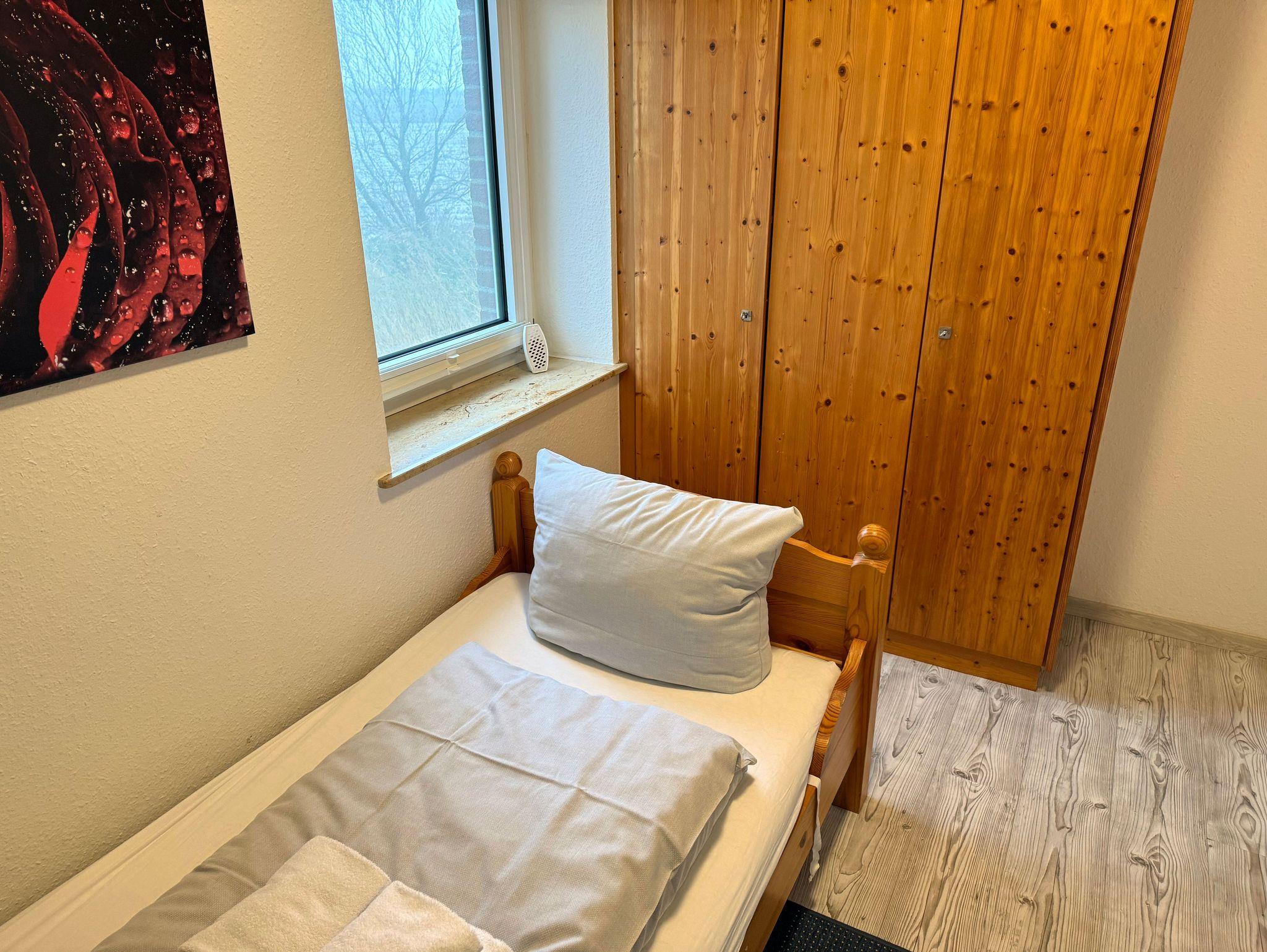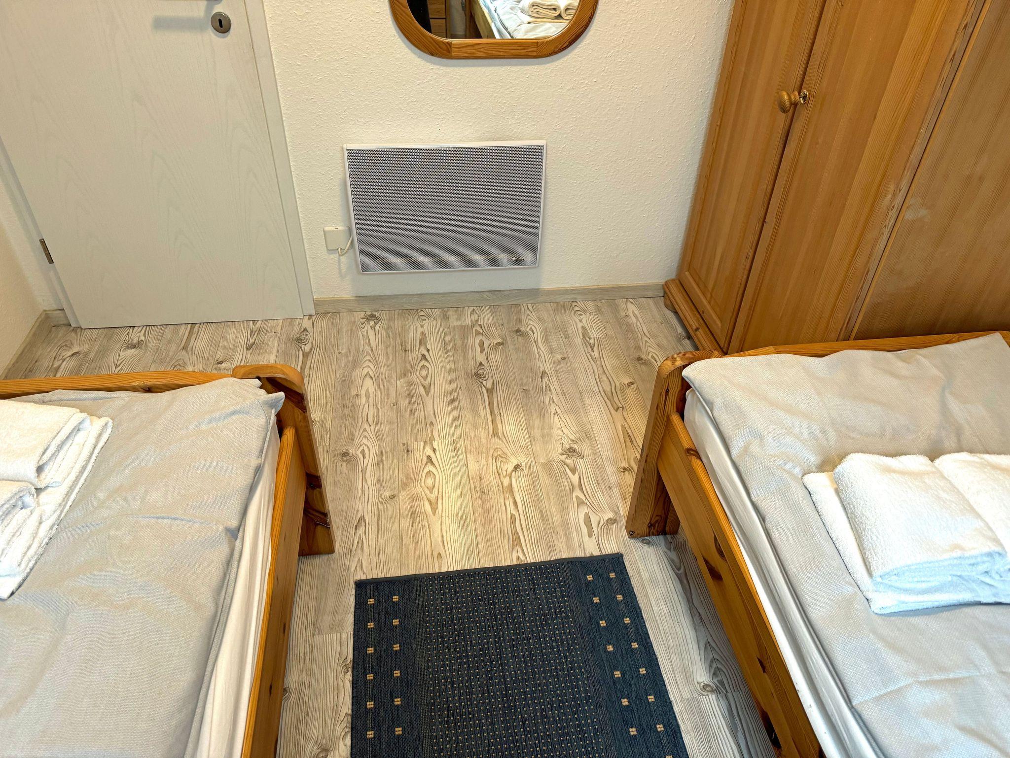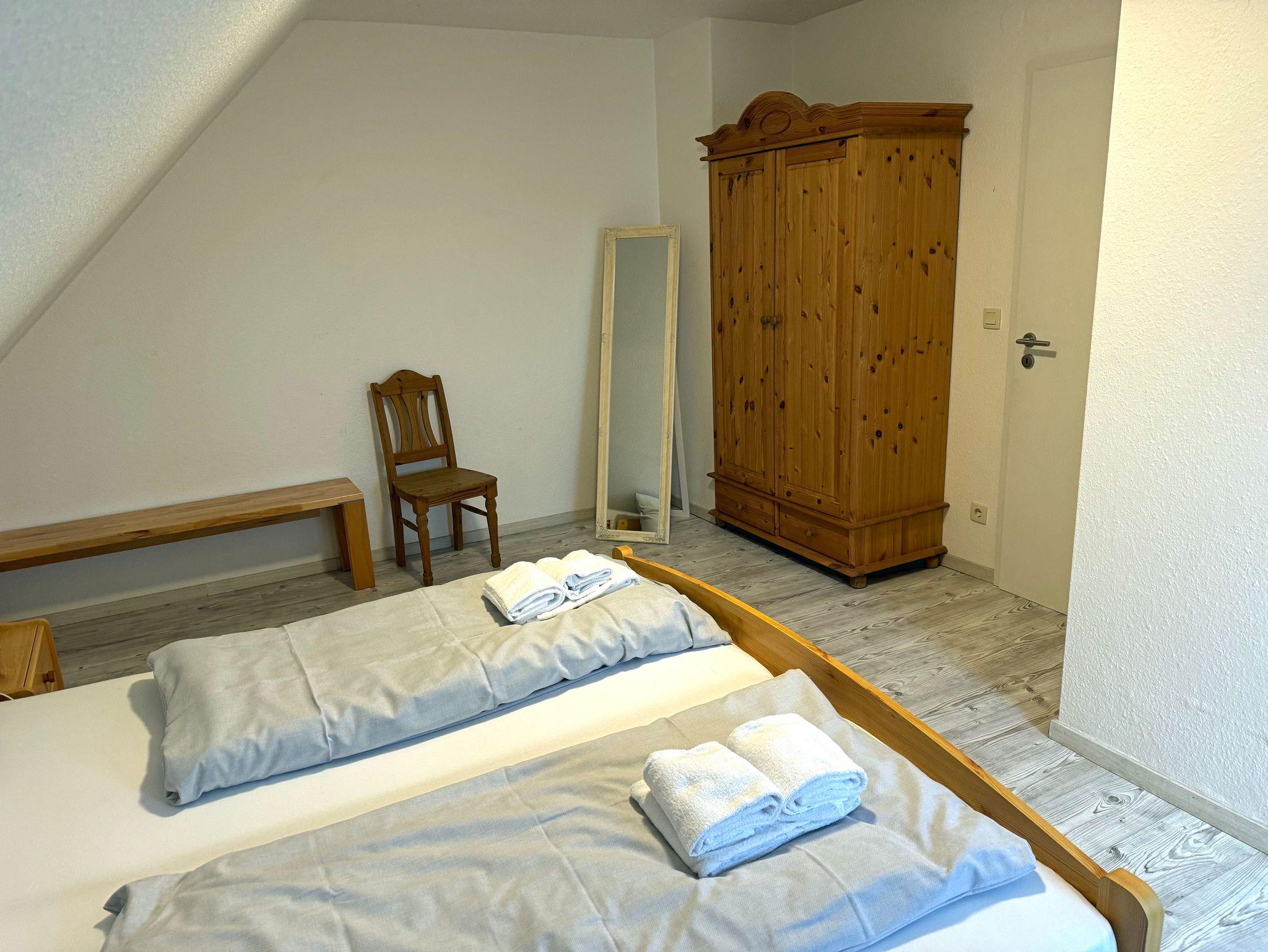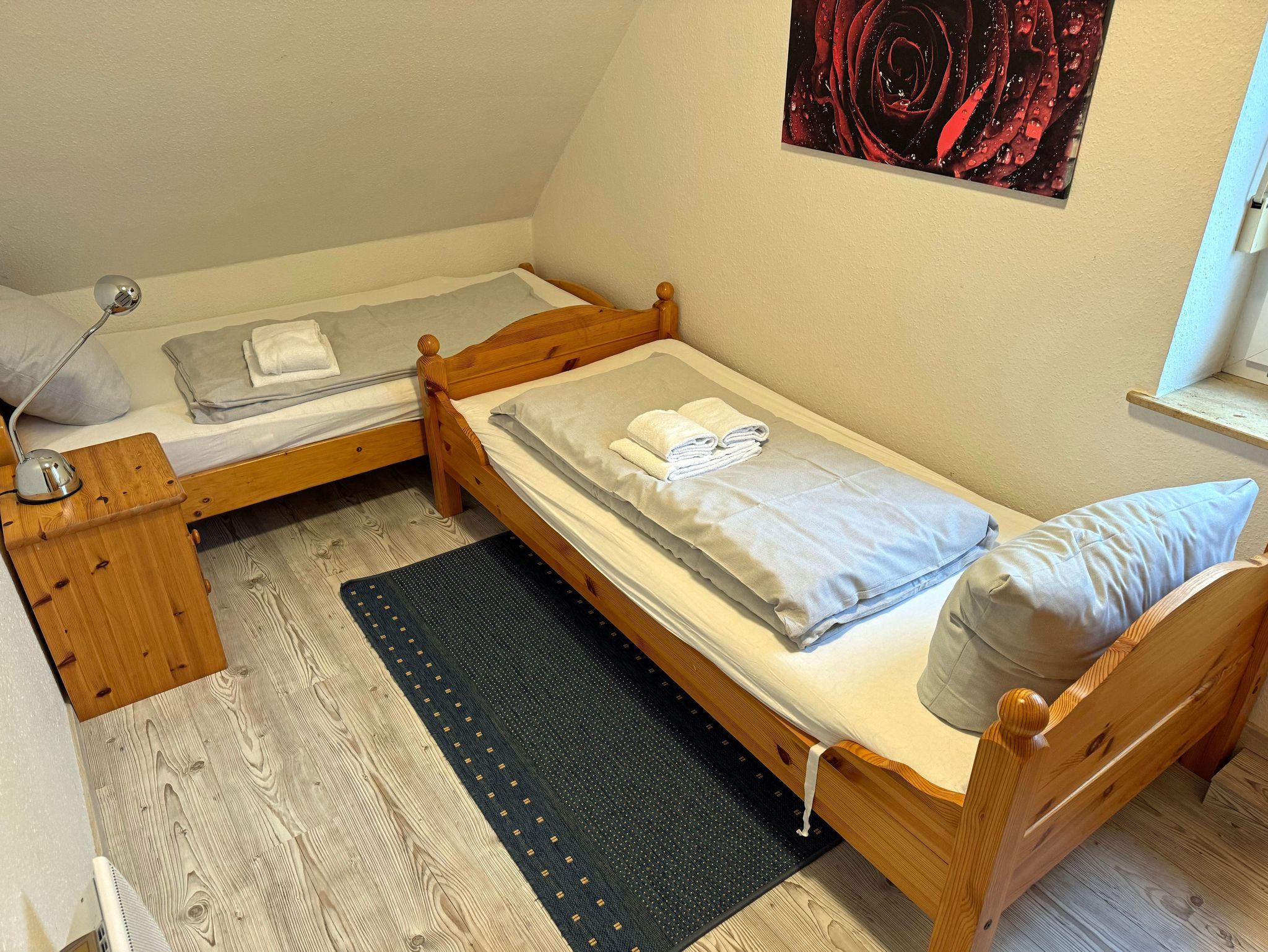 Im Obergeschoss befinden sich drei komfortable Schlafzimmer: Ein Zimmer mit einem Doppelbett sowie zwei weitere Zimmer mit jeweils zwei Einzelbetten. Zudem steht Ihnen auf dieser Etage ein zweites Badezimmer zur Verfügung.