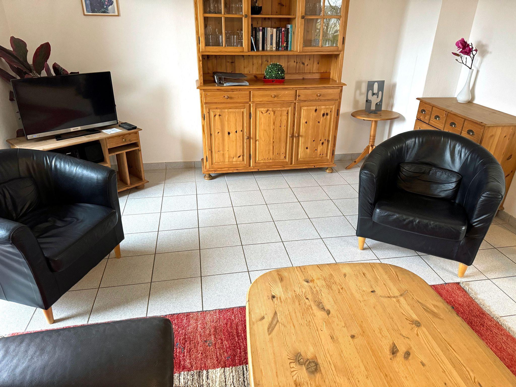 Im Erdgeschoss erwartet Sie ein großzügiges Wohnzimmer mit einem gemütlichen Wohn- und Essbereich. Die angrenzende Küche ist komplett ausgestattet ? inklusive Geschirrspülmaschine, Mikrowelle und weiteren Annehmlichkeiten. Vom Flur aus gelangen Sie zu einem zusätzlichen Bad mit Dusche und WC. Ein weiterer Pluspunkt ist die möblierte Außenterrasse inkl. Strandkorb, die direkt vom Wohnzimmer aus zugänglich ist. Im Abstellraum ist die Waschmaschine zu finden.
