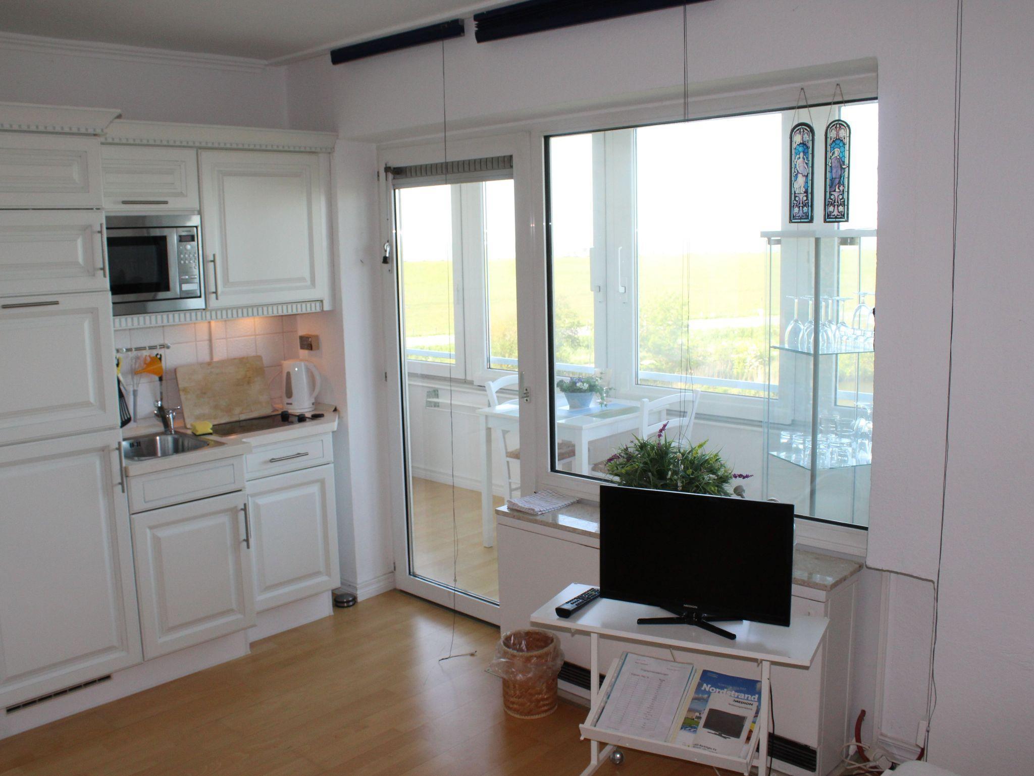 Gelegen im 3. Stock des Hauses Kiel im Kurzentrum auf Nordstrand finden Sie die Wohnung Nordseepanorama. Zu erreichen ist diese per Fahrstuhl. Sie verfügt über einen Wohn/Schlafraum, eine vollausgestattete Küche inkl. Geschirrspüler, ein Wohnzimmer und zwei Duschbäder mit Fußbodenheizung. Das Highlight der Wohnung ist der Wintergarten mit Essecke, welcher perfekten Blick auf das Meer, bis hin zu den Halligen und Nordstrand bietet. bis zum Nordseedeich sind es nur 150 Meter.