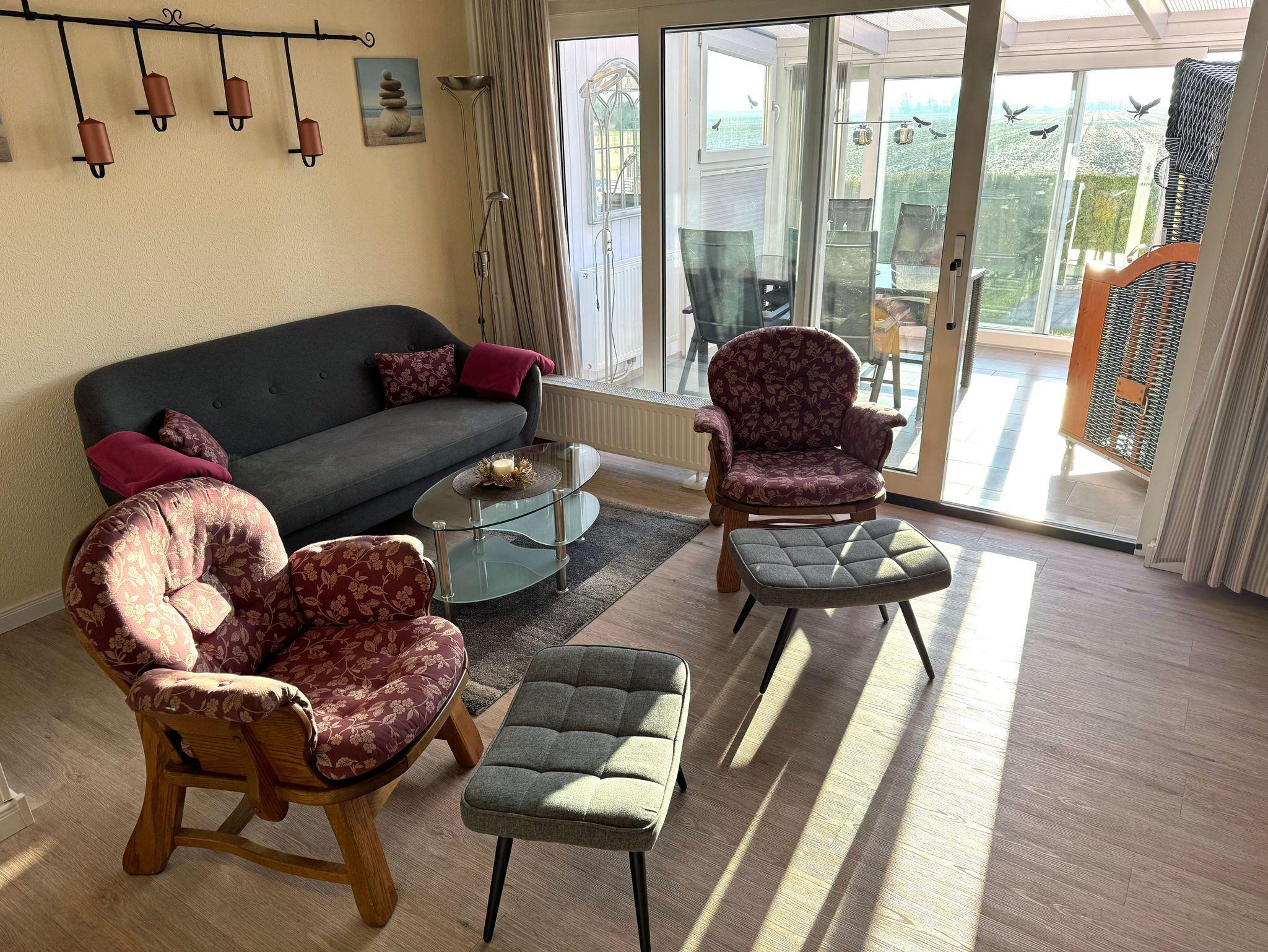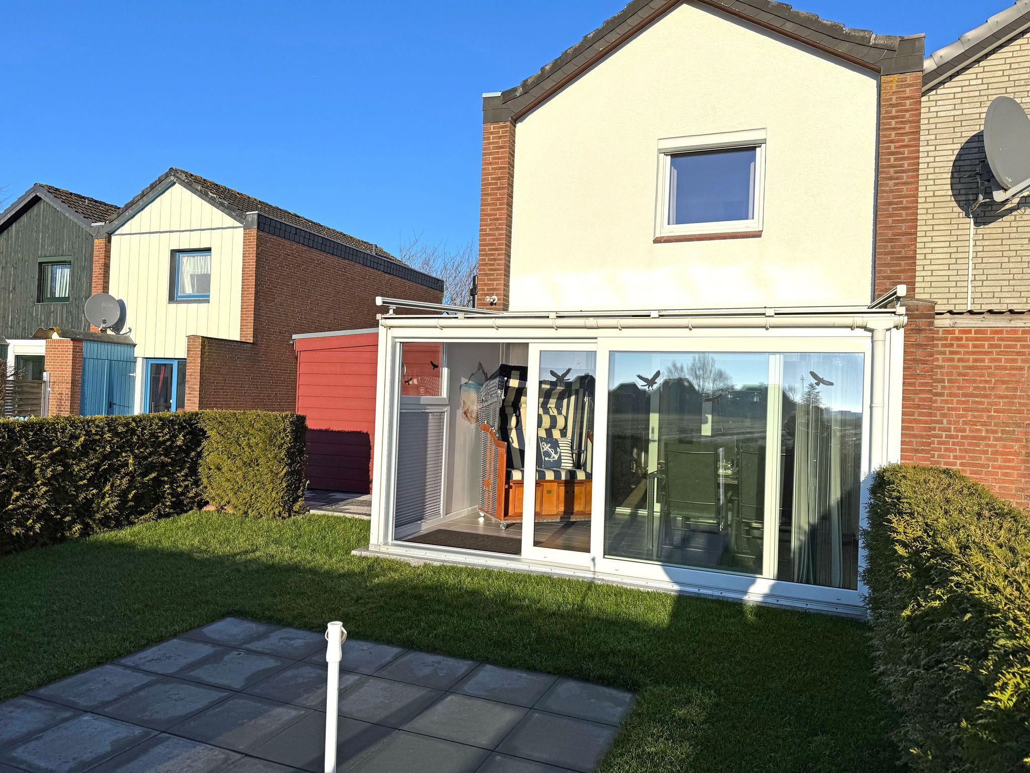 Charmantes Reihenhaus Haus Dody auf Nordstrand mit Kamin, Terrasse und moderner Ausstattung für erholsame Urlaubstage.