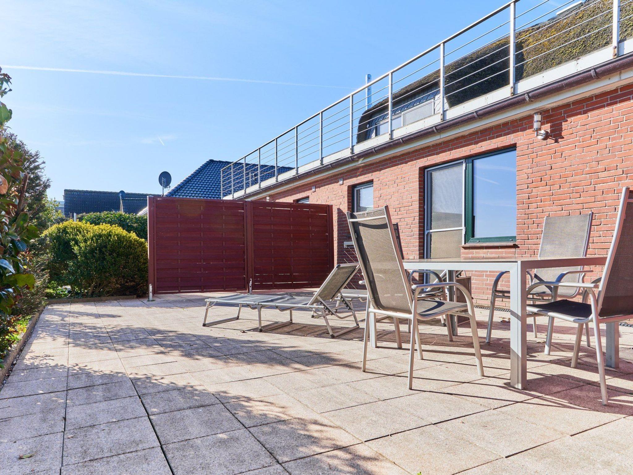 Im geräumigen Wohnzimmer sorgen SAT-TV, WLAN und ein CD-Player für Ihre Unterhaltung. Von hier aus haben Sie Zugang zur geschützten Terrasse (45 qm) mit Gartenmöbeln, auf der Sie herrlich einen ereignisreichen Tag ausklingen lassen können.