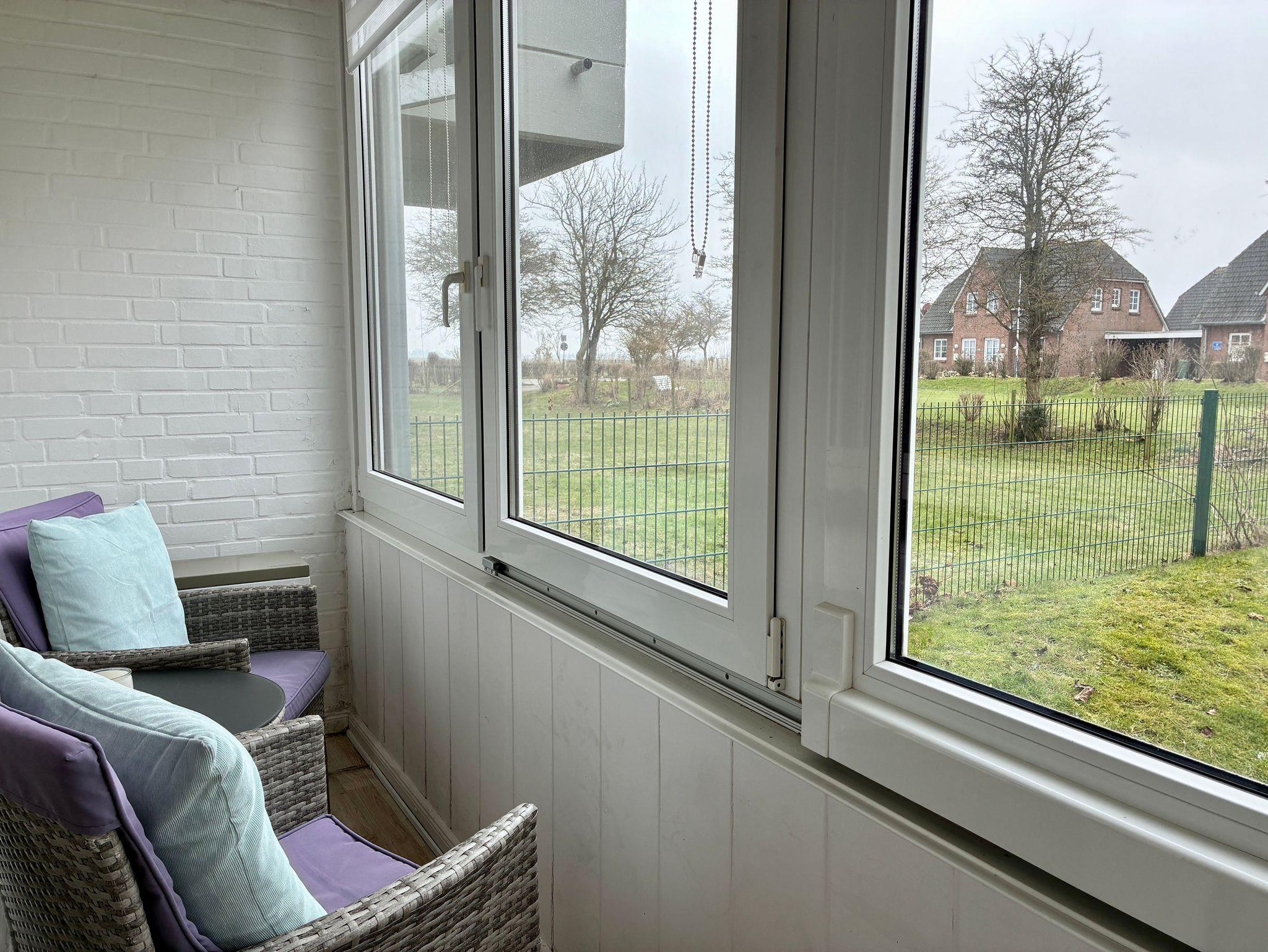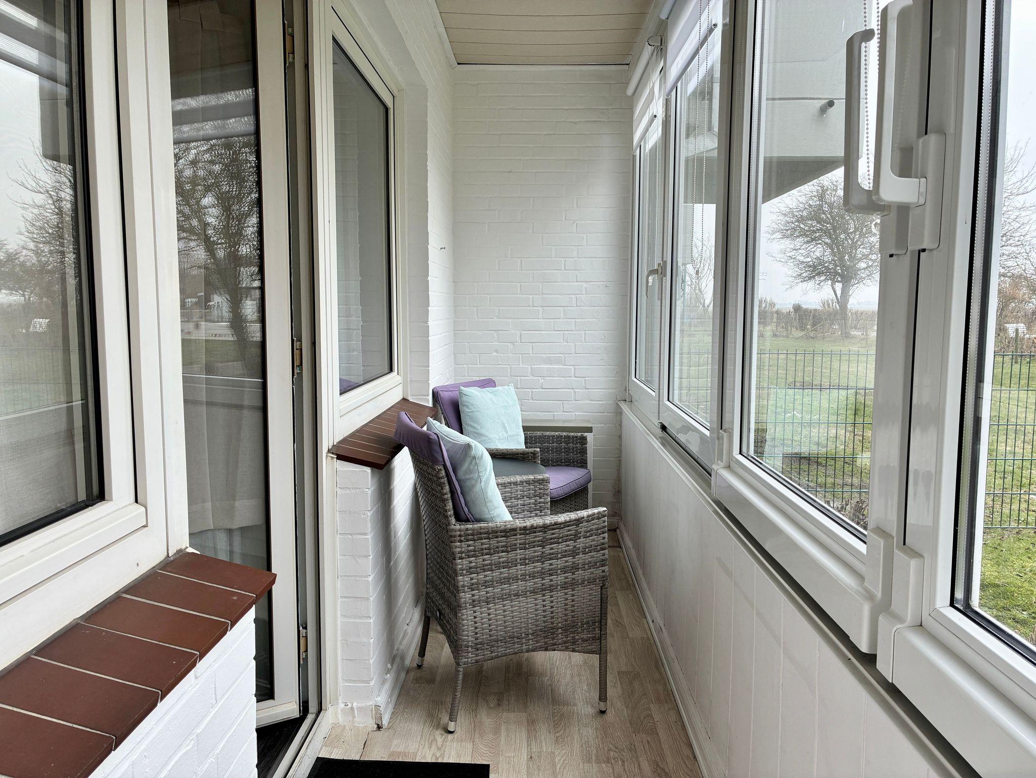 Die Ferienwohnung Seedeich liegt im Erdgeschoss auf der Westseite des Hauses und empfängt Sie mit einer freundlichen, lichtdurchfluteten Atmosphäre. Große Fenster und der Wintergarten sorgen vom späten Vormittag bis in die Abendstunden für viel Tageslicht und schaffen einen angenehmen Übergang zwischen drinnen und draußen. Vom Wohnbereich aus gelangen Sie auf den Balkon, von dem sich ein weiter Blick ins Grüne eröffnet.