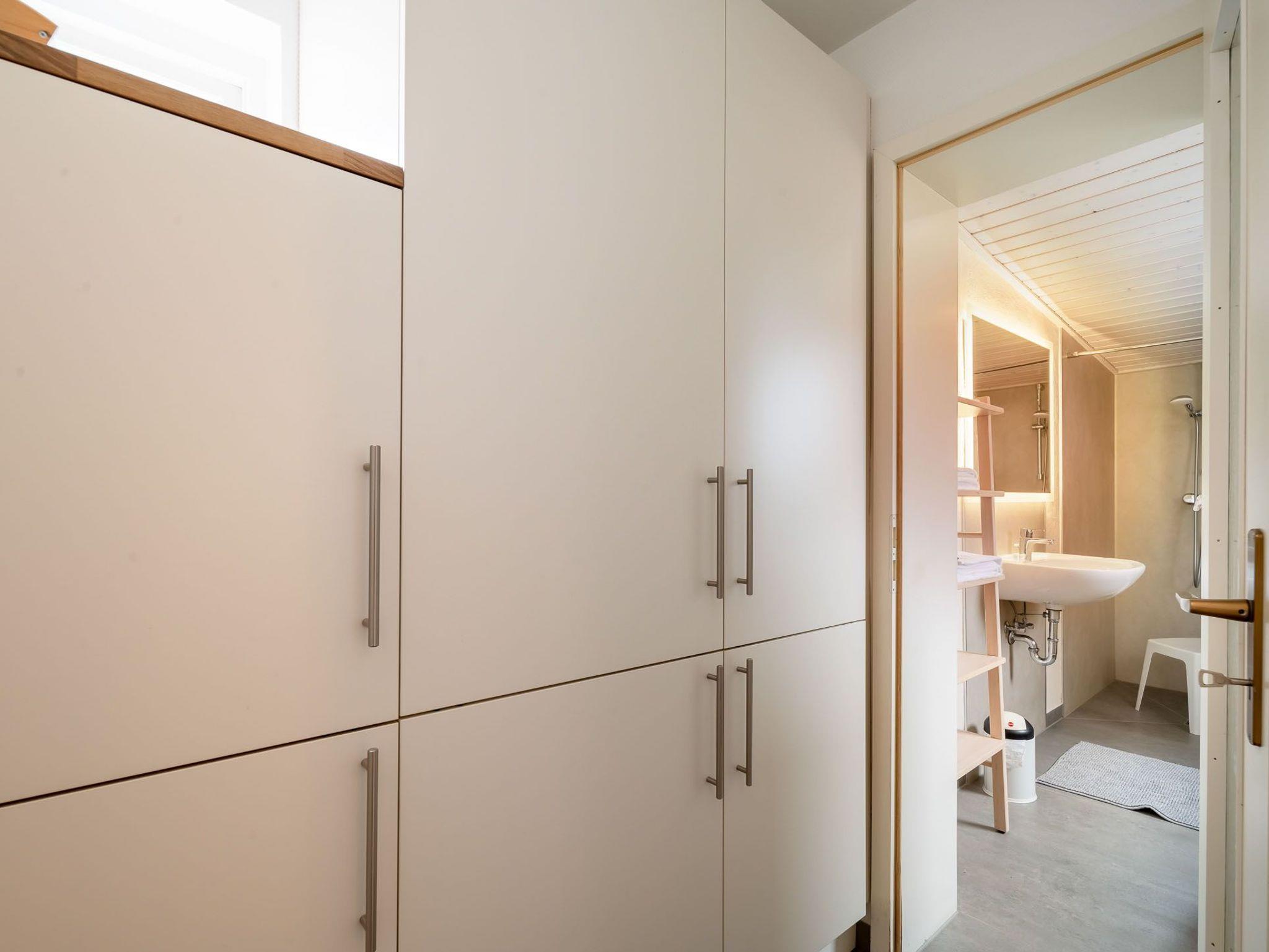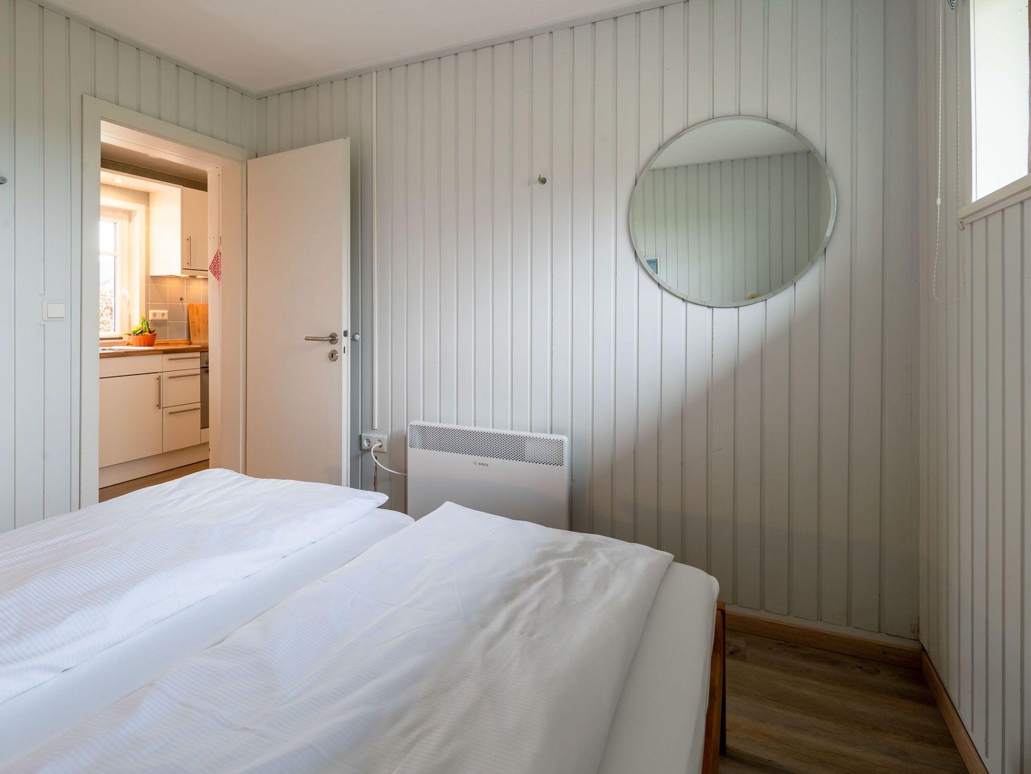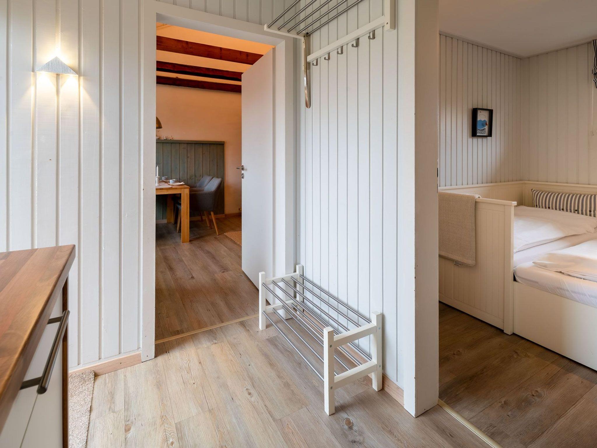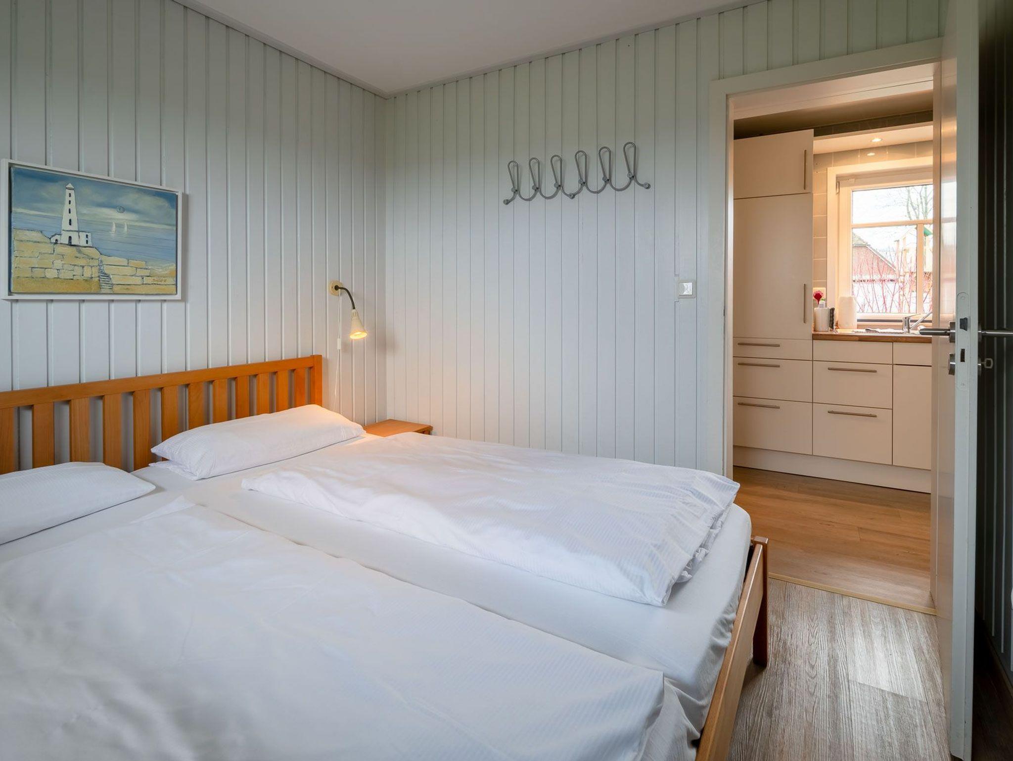 Das Schlafzimmer verfügt über ein Doppelbett (180x200cm) und ein weiteres Schlafzimmer mit ausziehbarem Doppelbett (160x200cm) sorgen für angenehmen Schlafkomfort für bis 4 Personen. Ein schönes Duschbad mit ebenerdiger Dusche, Fön, hängendem WC und beheiztem Handtuchwärmer bieten modernes Urlaubswohngefühl. Ein eigener PKW-Stellplatz, der mit dem Namen des Hauses gekenzzeichnet ist und Waschmaschine/Trockner im Gemeinschaftsserviceraum stehen ebenfalls zur Verfügung. Fahrräder können geschützt abgestellt werden. EIne Erstausstattung an Bettwäsche und Handtüchern kann optional für 20€ pro Person hinzugebucht werden.