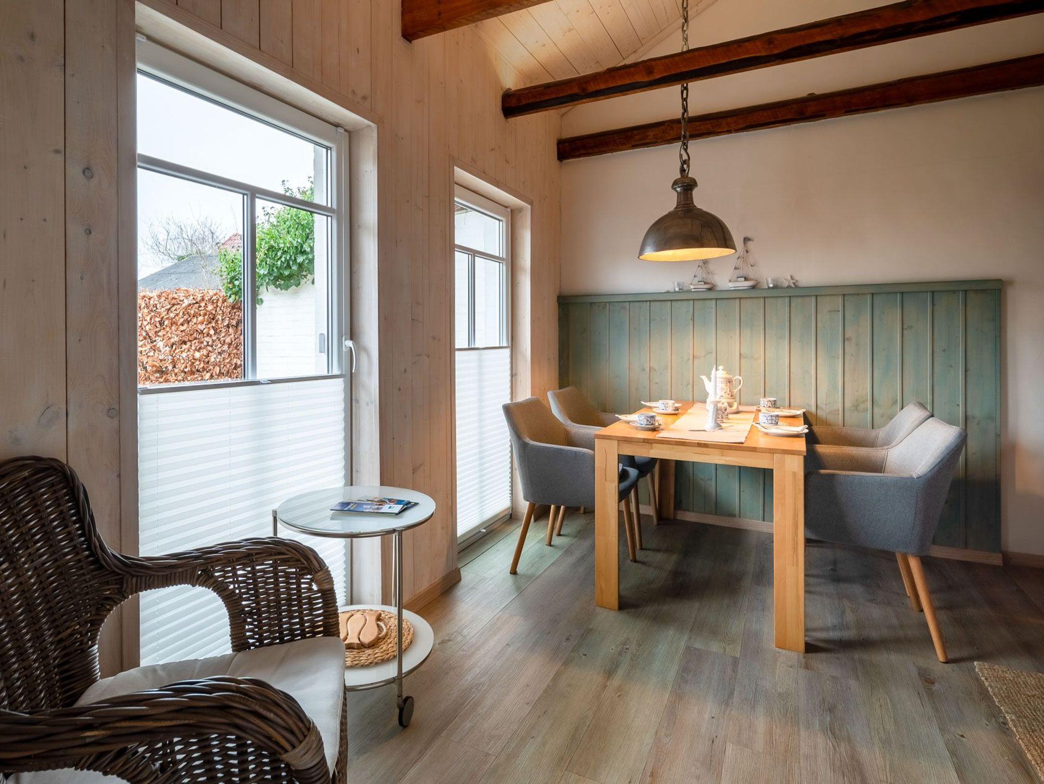 Erleben Sie erholsame Tage im stilvollen Kapteins Cottage Momme mit Kamin, Sonnenterrasse und moderner Ausstattung auf Nordstrand.