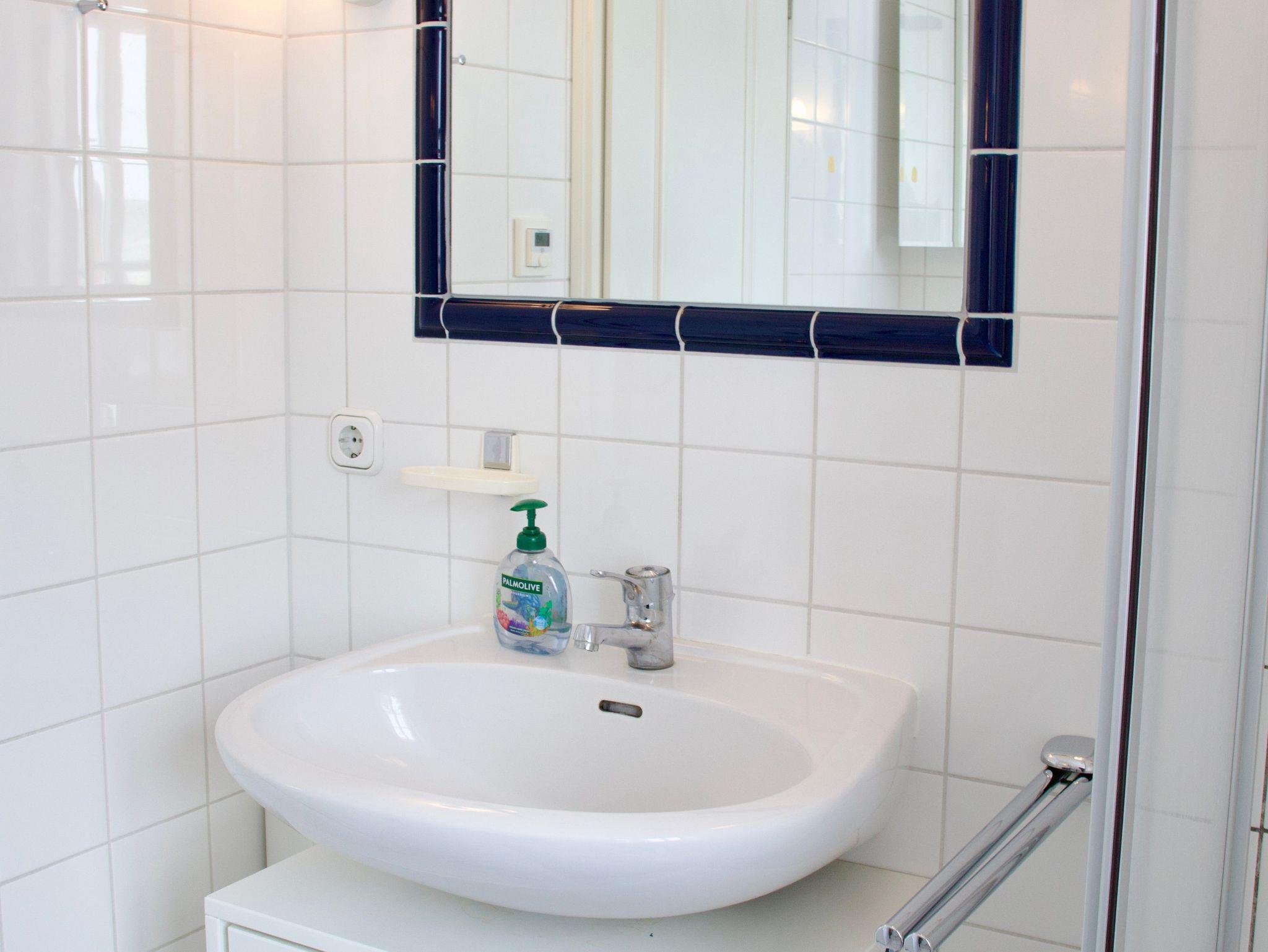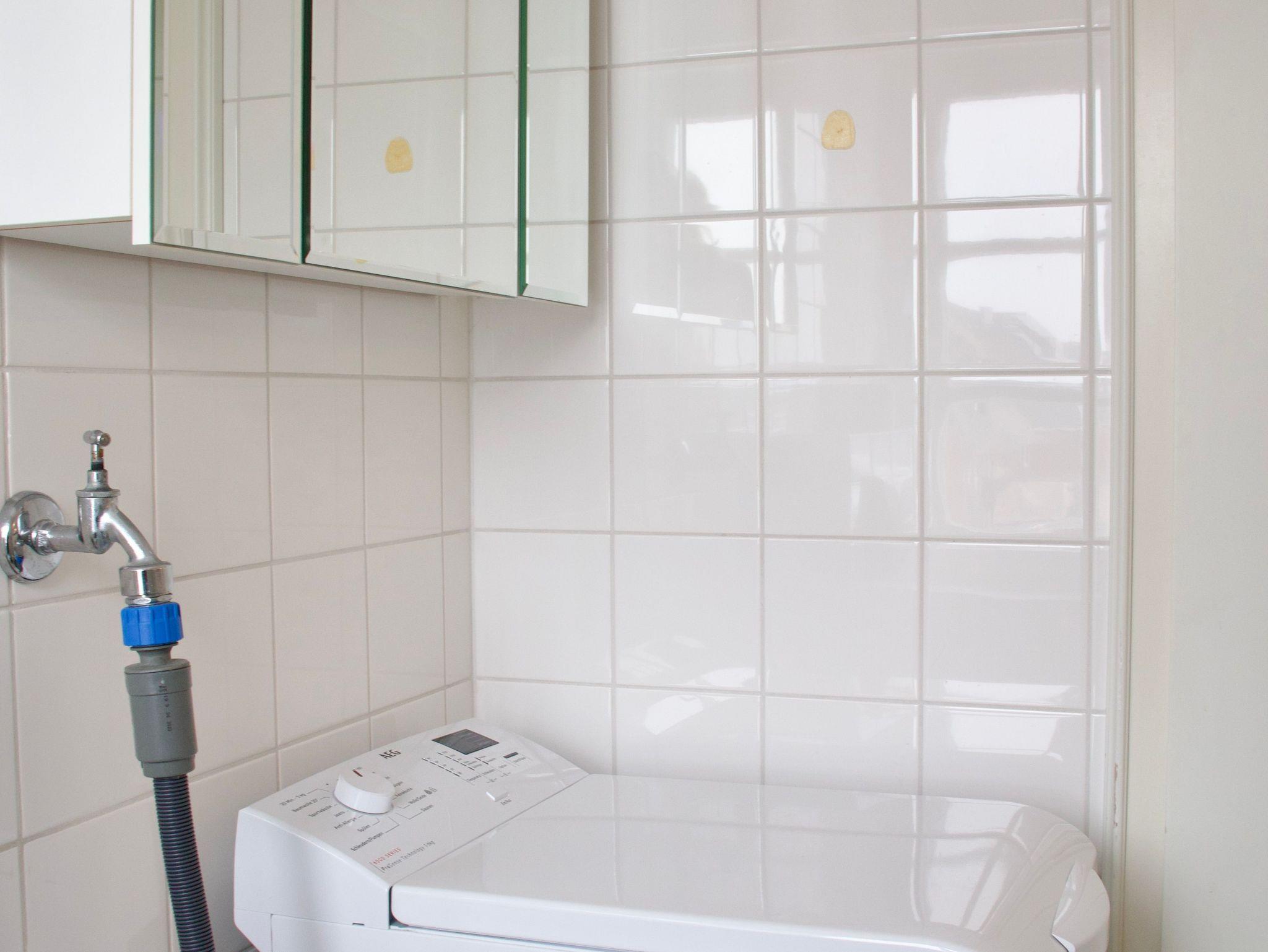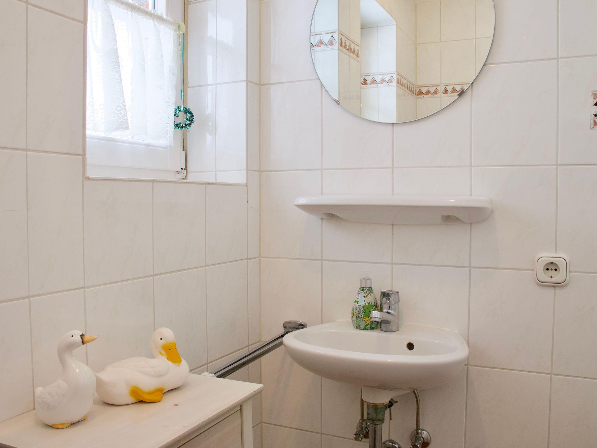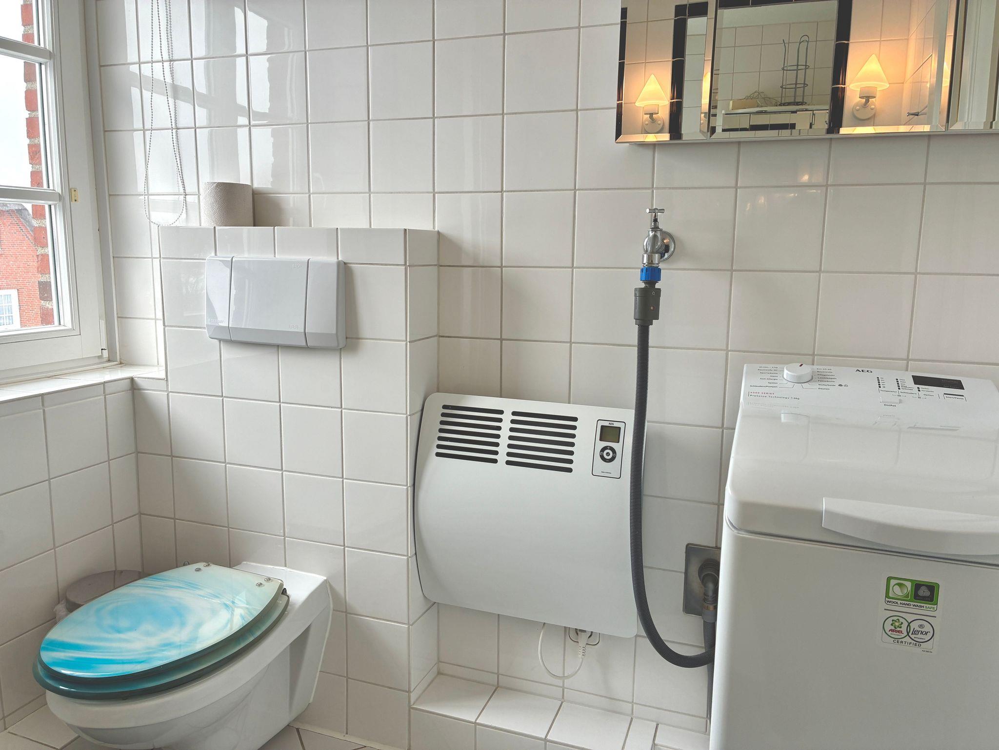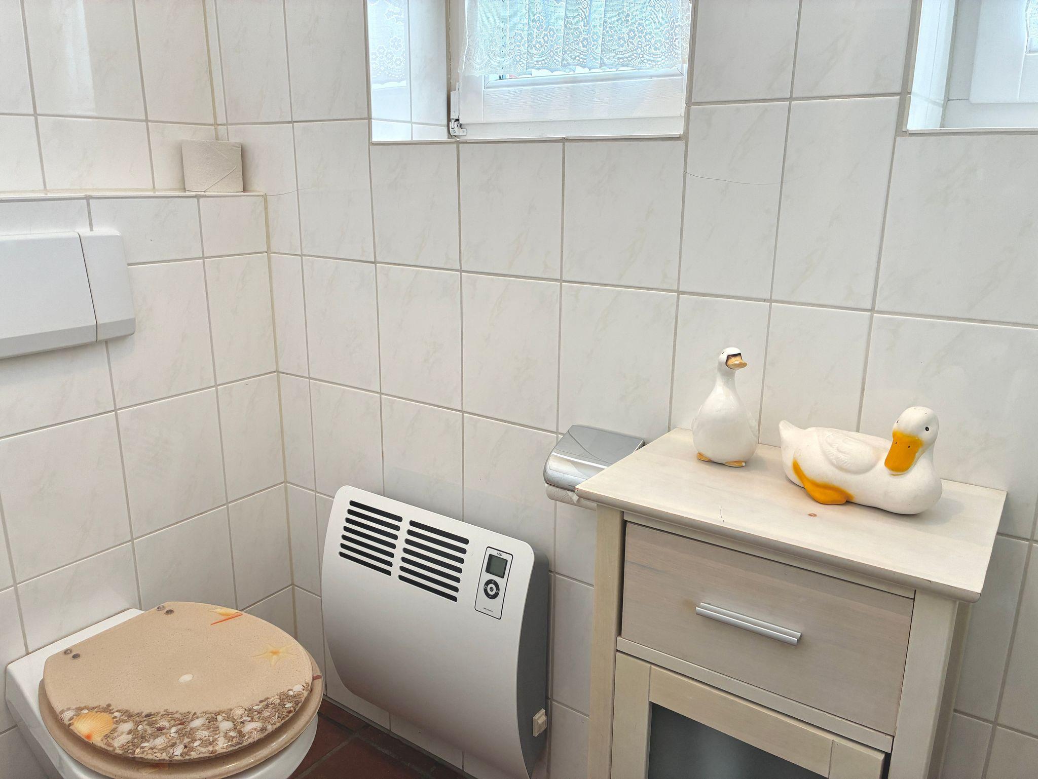 Das Badezimmer ist mit Dusche, WC und Waschmaschine ausgestattet. Zusätzlich steht ein separates Gäste-WC zur Verfügung, was den Komfort des Hauses sinnvoll ergänzt.
