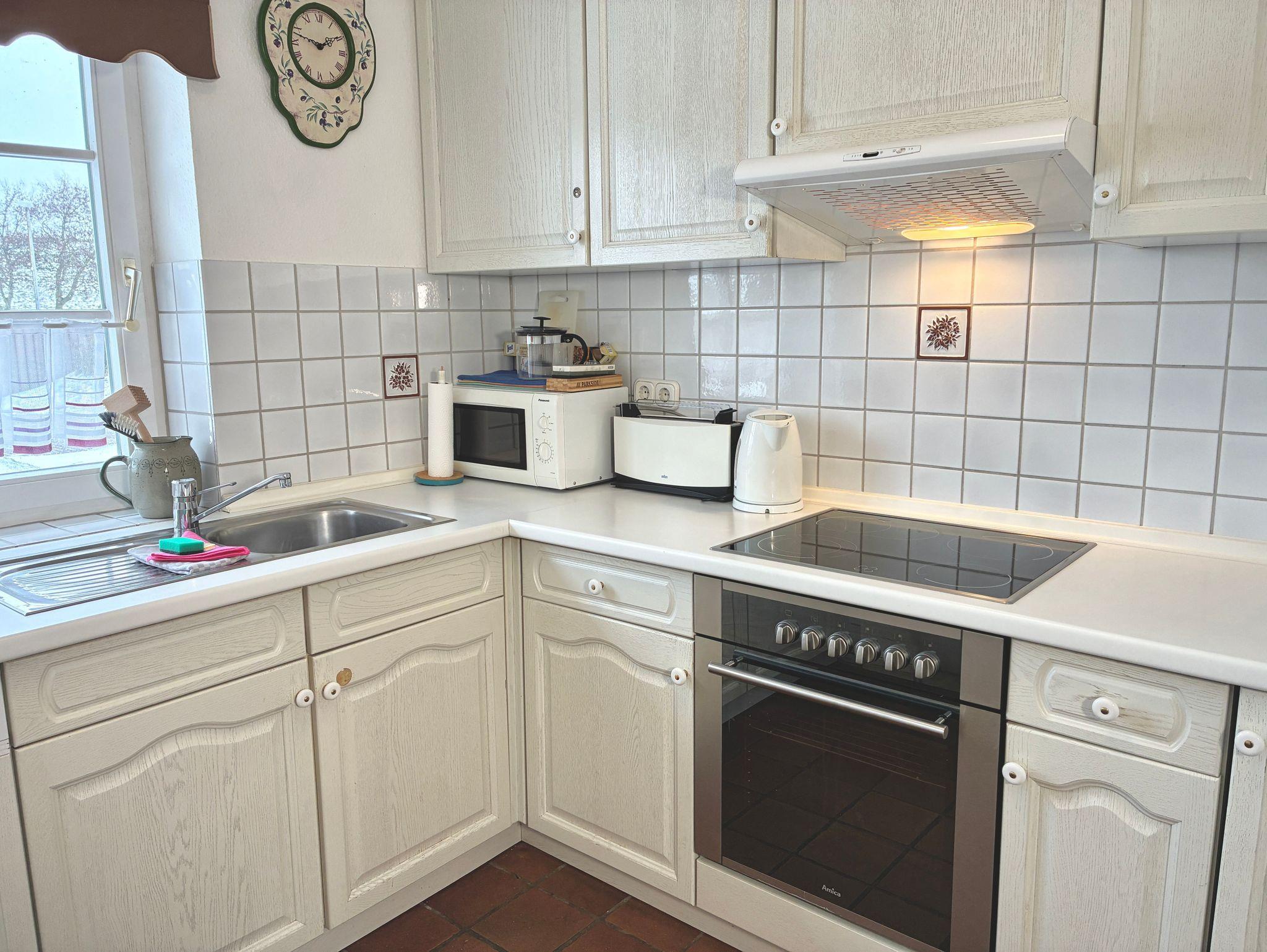 Die moderne Einbauküche ist durchdacht gestaltet und lässt in ihrer Ausstattung keine Wünsche offen. Sie ist vollständig eingerichtet und verfügt unter anderem über eine Kaffeemaschine, eine Gefriermöglichkeit sowie einen Geschirrspüler und eignet sich ideal für die Selbstversorgung während des Aufenthalts.