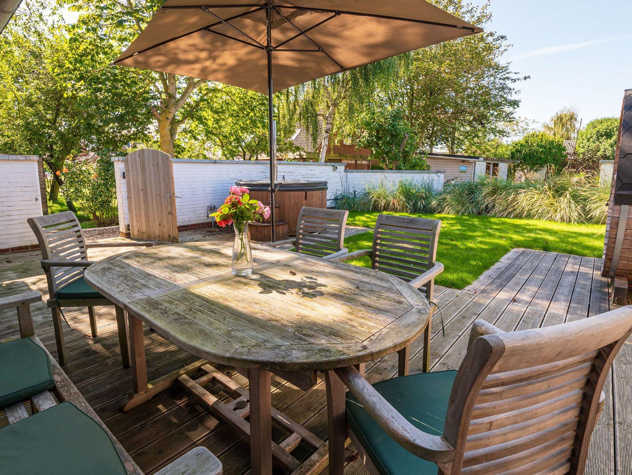 Lassen Sie den Abend entspannt im Garten mit Barbecue auf der Terrase ausklingen und verbringen Sie kuschelige Stunden im Strandkorb.