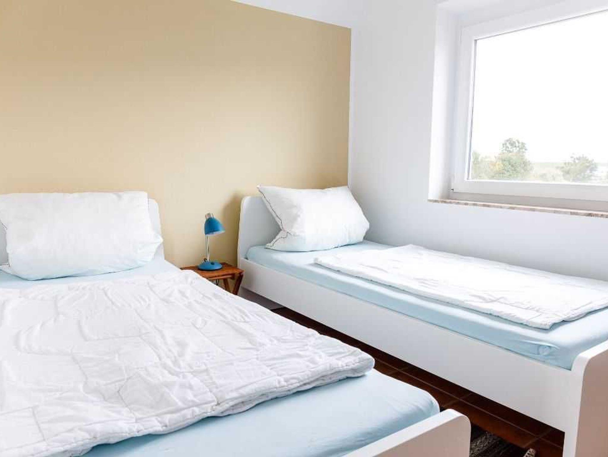 Einzelbetten. Ebenfalls befindet sich dort das Duschbad / WC. Im Erdgeschoss befindet sich der Wohnbereich.