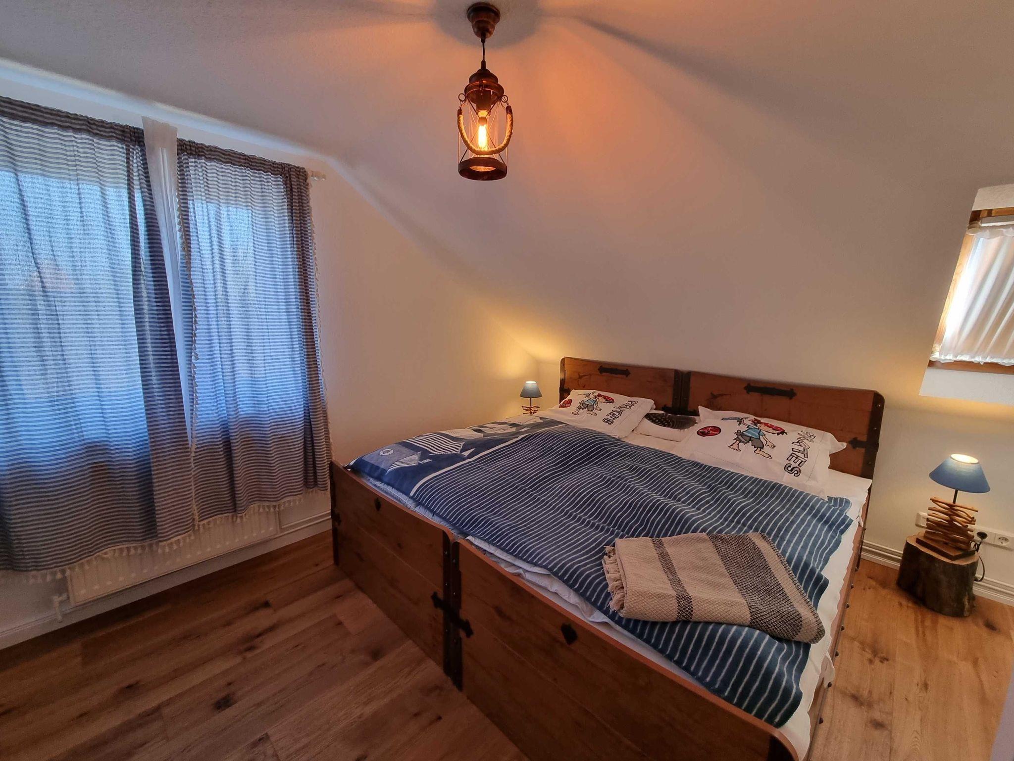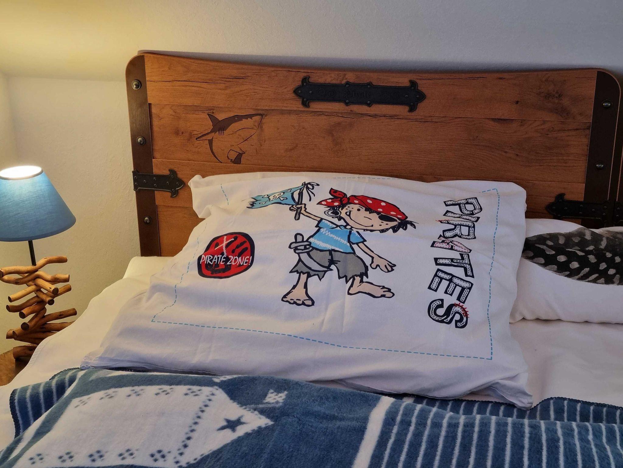 Ein wunderbares Versteck unweit der Nordsee bietet das Haus auf dem Hamburger Deich auch für seine kleinen Feriengäste mit dem „Piratennest“, einem kleinen Paradies für Kinder, das als eines der 2 „Schlaf-Gut-Zimmer“ im 1. OG als erstes der Zimmer auf sie wartet. Mit Piratenbetten und unzähligem Spielzeug.