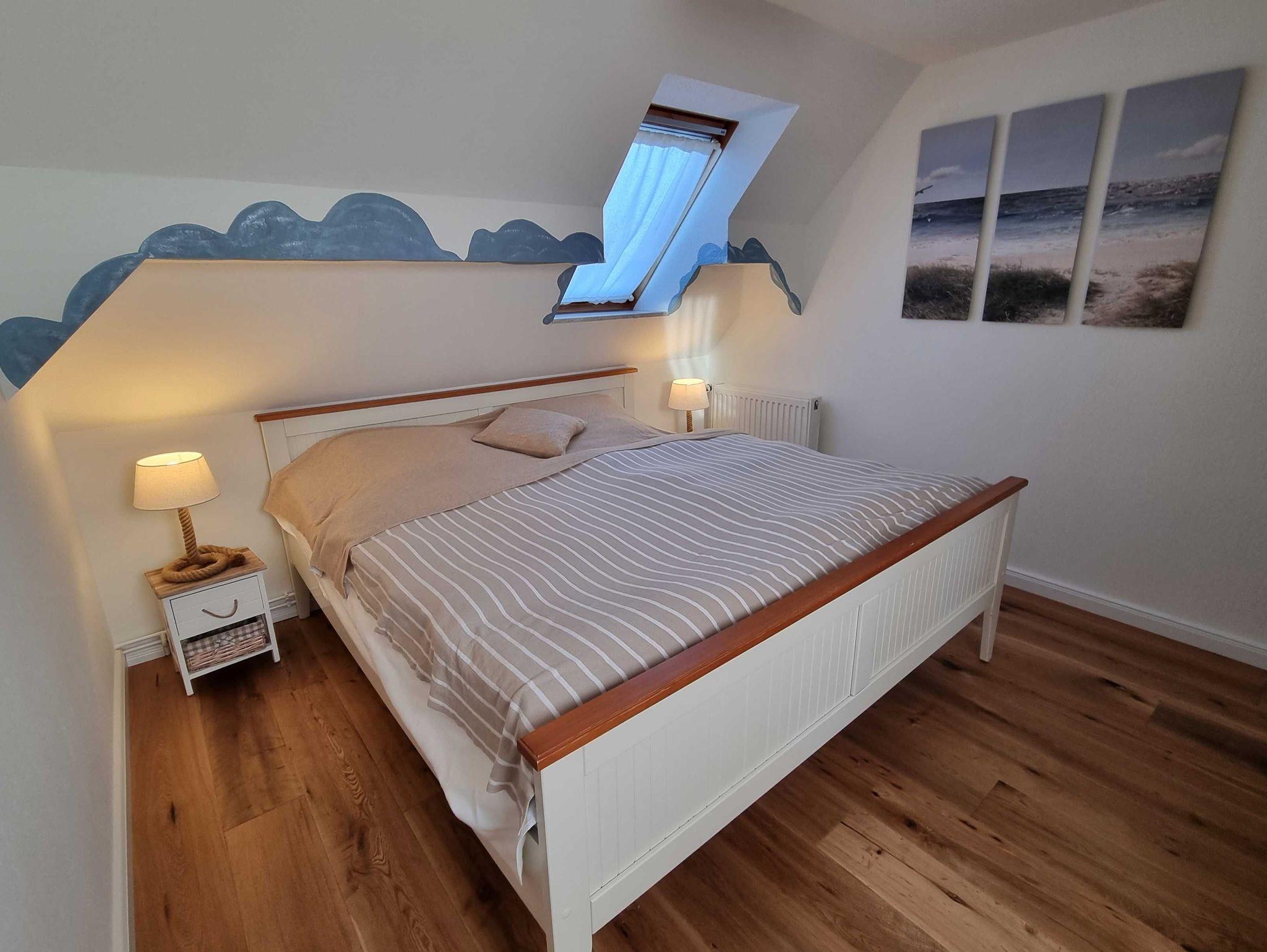 Das „Schlaf-Gut-Zimmer“ der Eltern befindet sich am Ende der Diele auf derselben Etage oben,