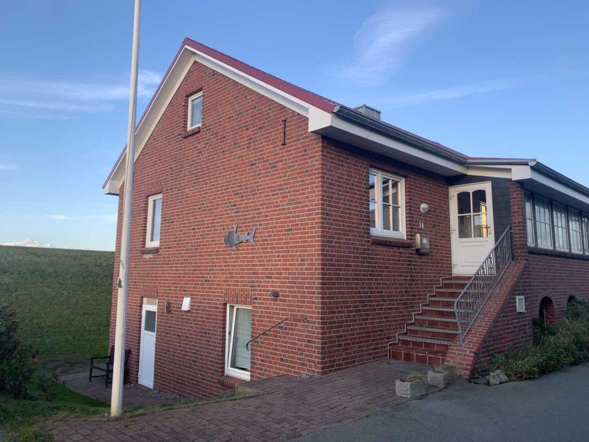 Direkt am Aussendeich gelegen ist das Kapitänshus. Im Obergeschoss des Hauses liegt die Ferienwohnung Frische Brise. Von der Wohnung aus haben sie einen atemberaubenden Blick über den Deich auf die Halligen, die Insel Pellworm und die unendliche Weite der Nordsee.