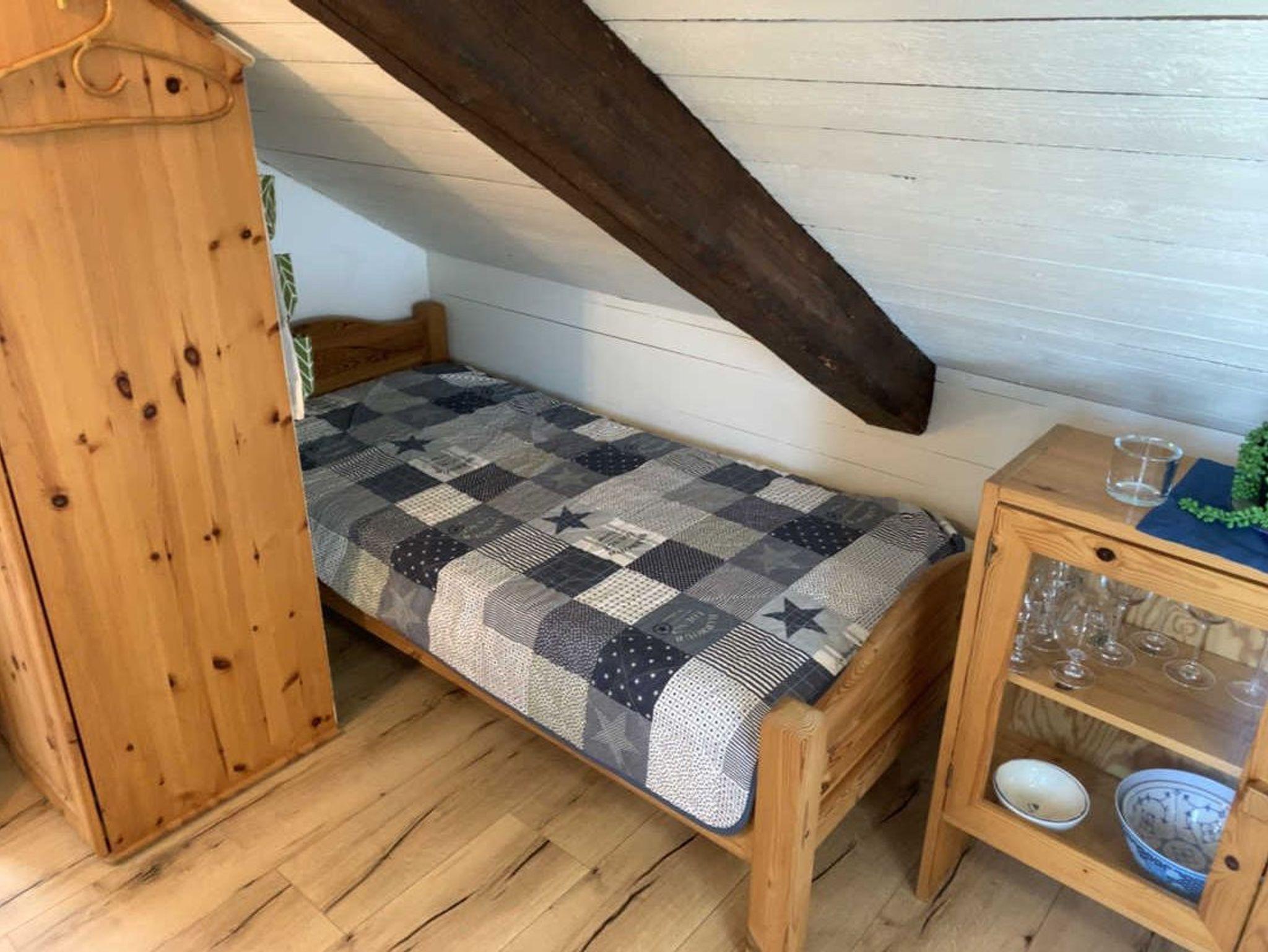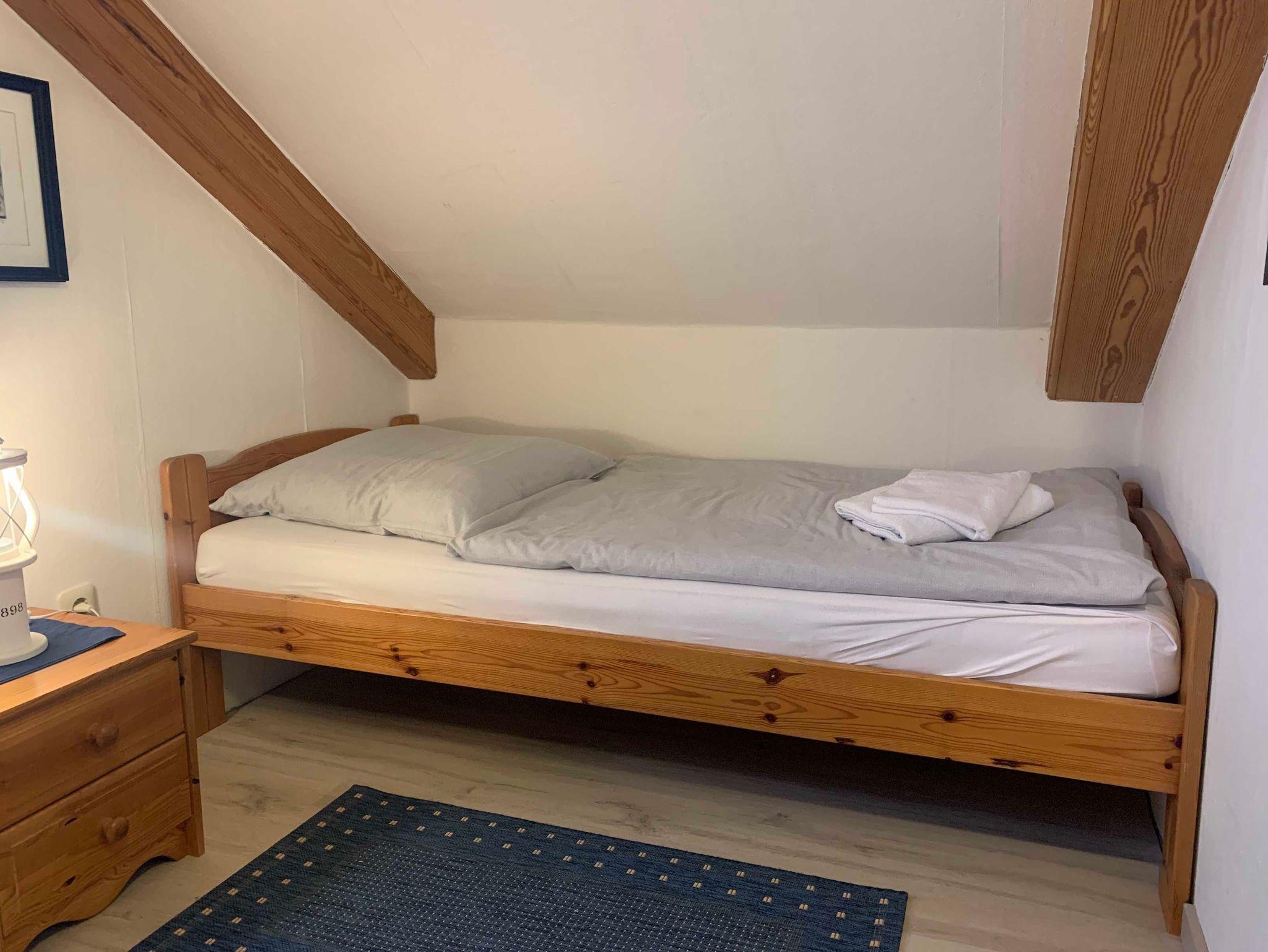 Eingerichtet ist die 45qm große Wohnung für bis zu drei Personen. Das Schlafzimmer, auch mit Meerblick, ist ausgestattet mit einem französischem Doppelbett und Kleiderschrank, ein weiteres Bett steht in einer ruhigen Ecke des Wohnzimmers. Weiterhin hat die Wohnung eine Wohnküche mit Esstisch direkt am Fenster, für den unbeschwerten Ausblick.