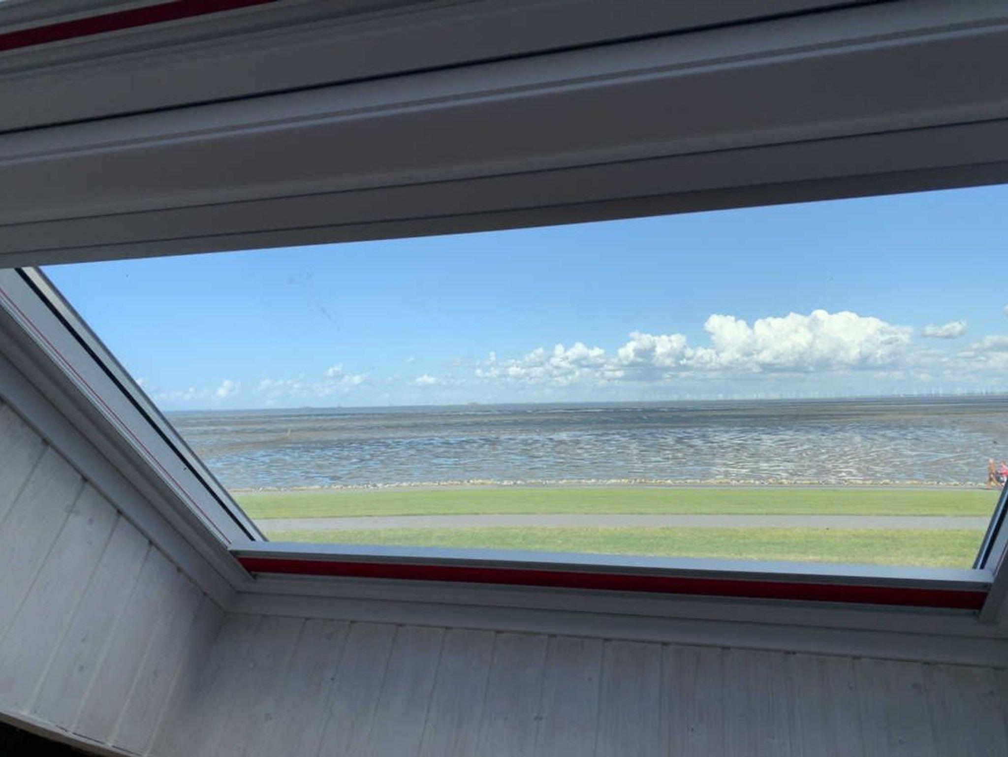 Genießen Sie den atemberaubenden Meerblick von der Ferienwohnung Frische Brise direkt am Aussendeich in Nordstrand.