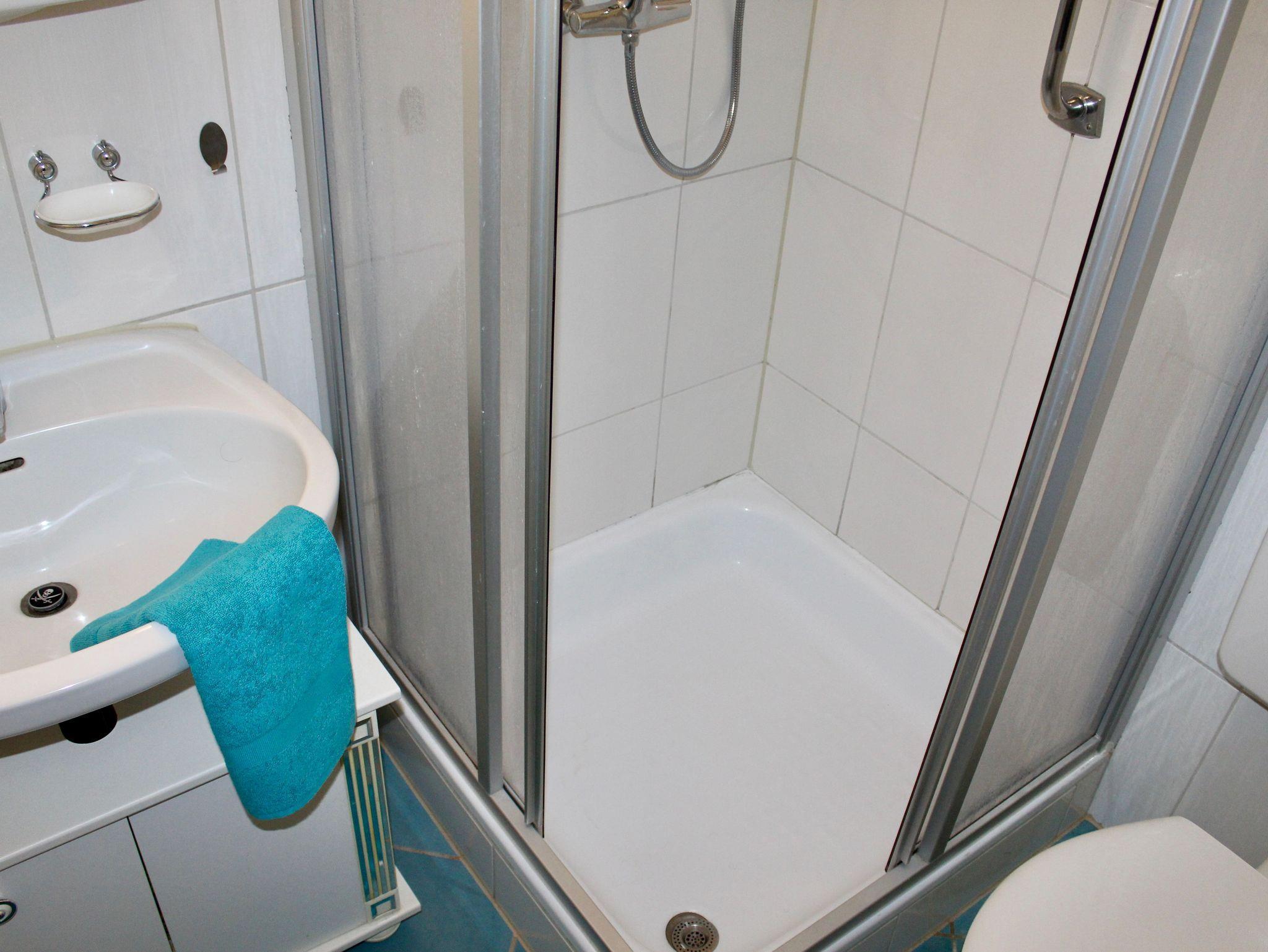 Das gemütliche Domizil verfügt über ein stilvolles Duschbadad.