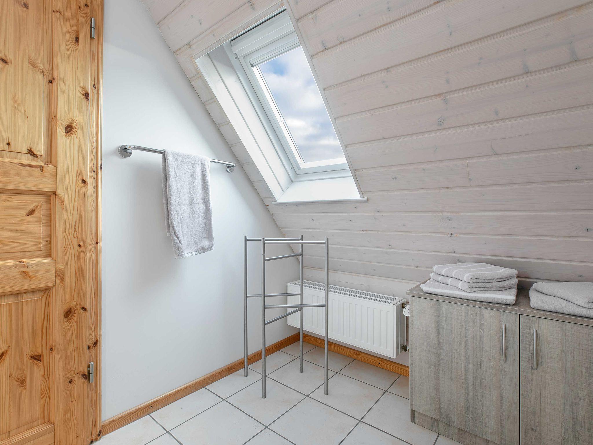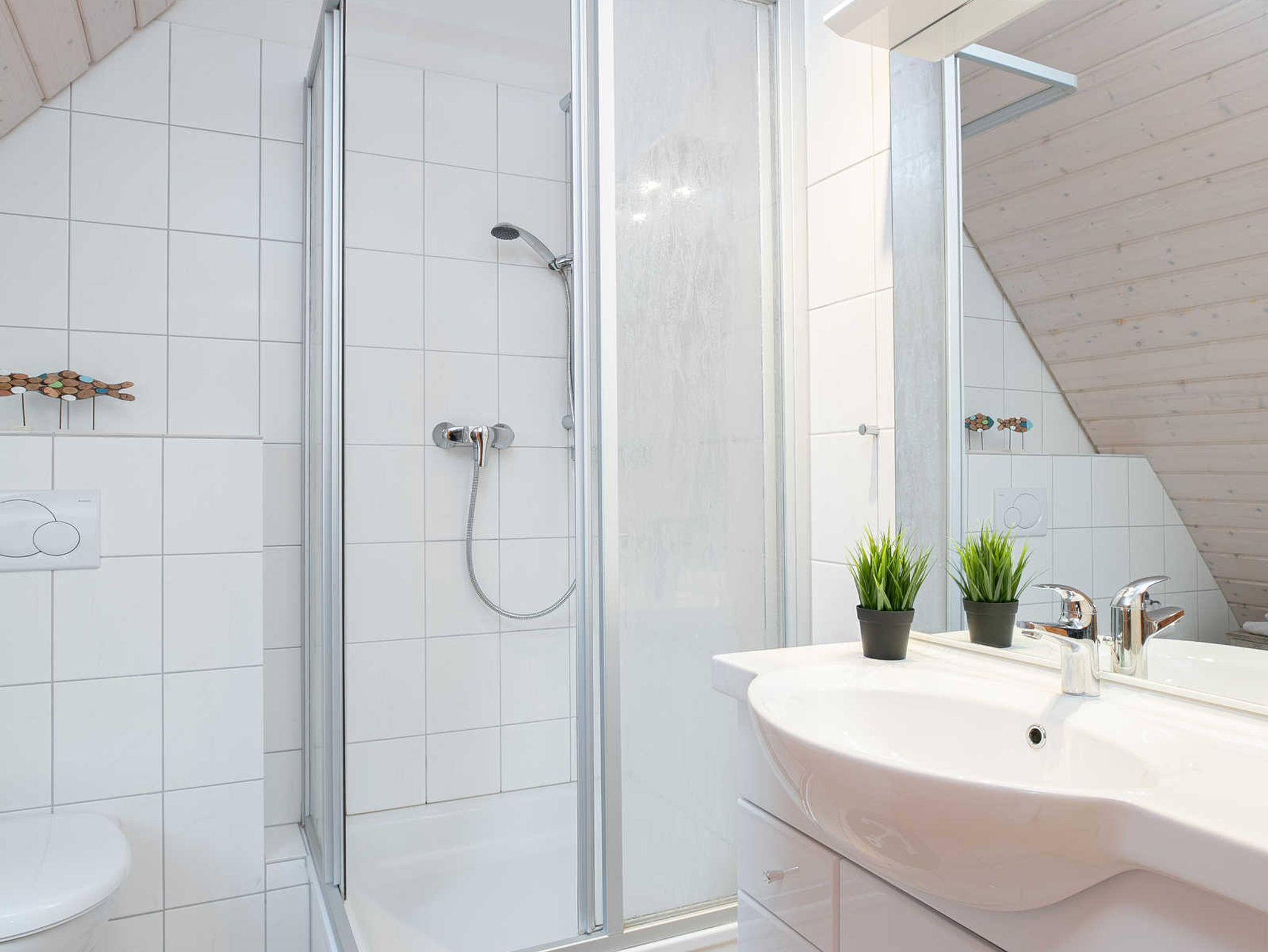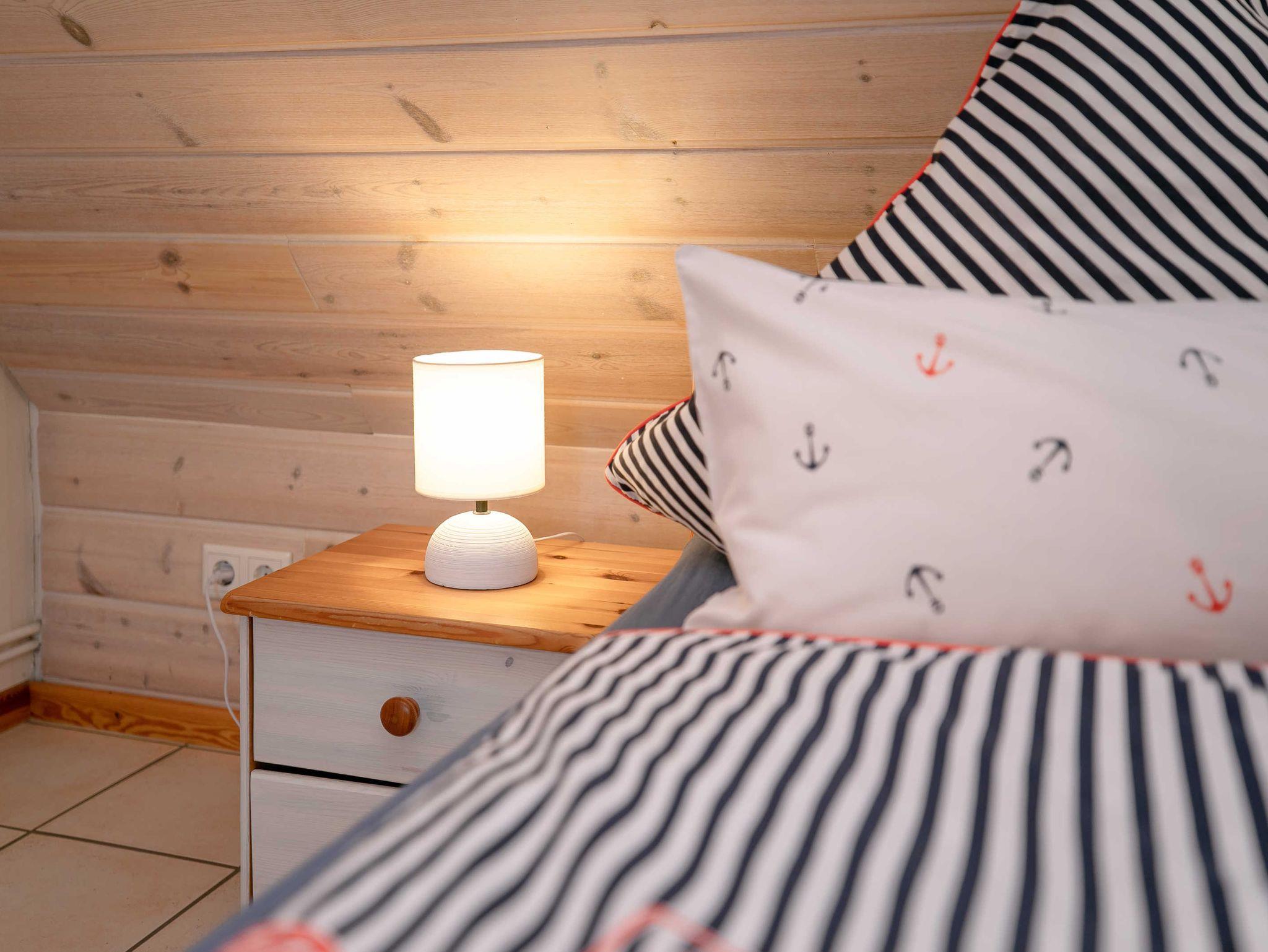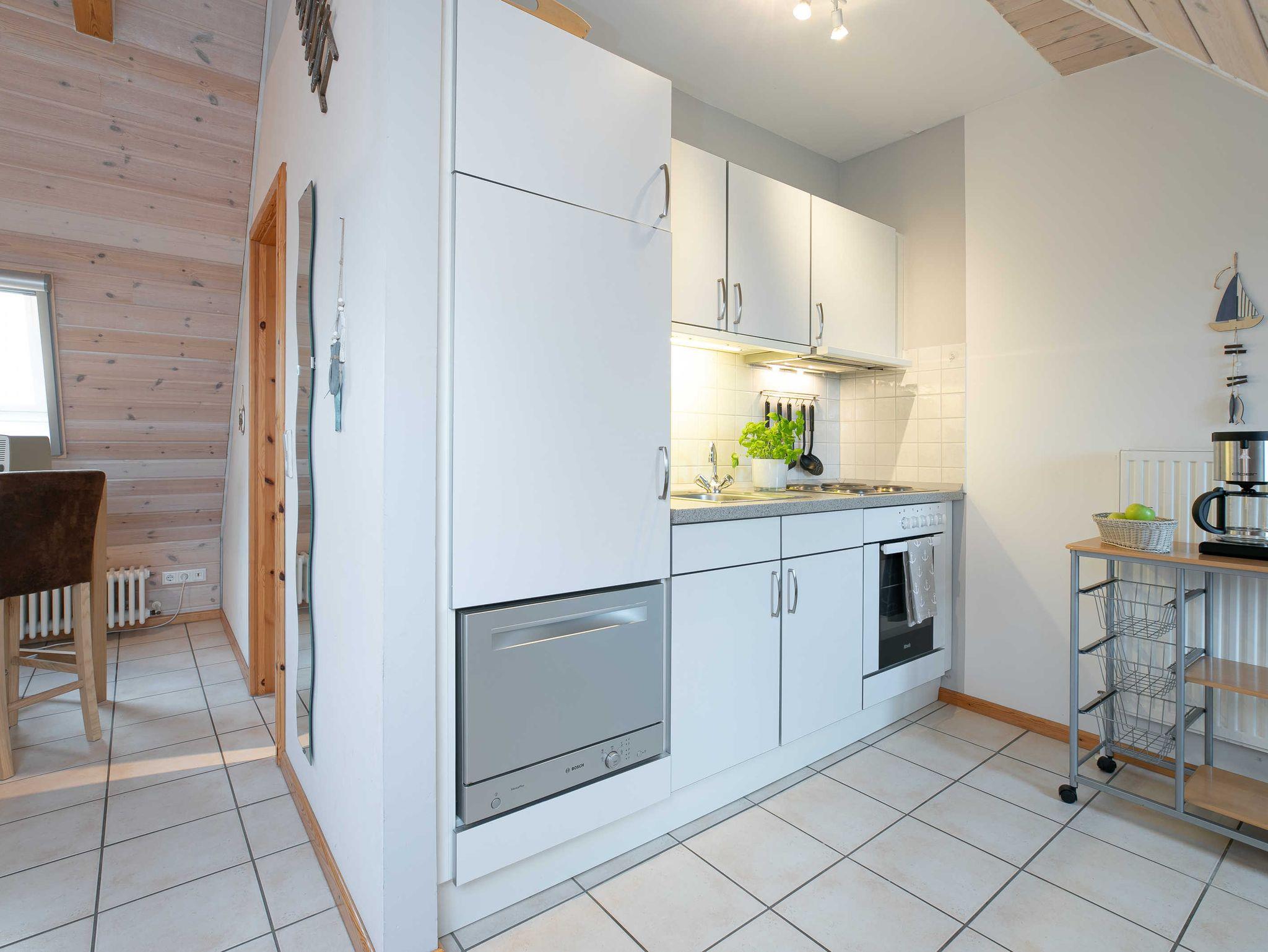 Alles ist im modernen Landhausstil in den Farbtönen weiß/sandfarben eingerichtet und mit maritimen Accessoires gestaltet.