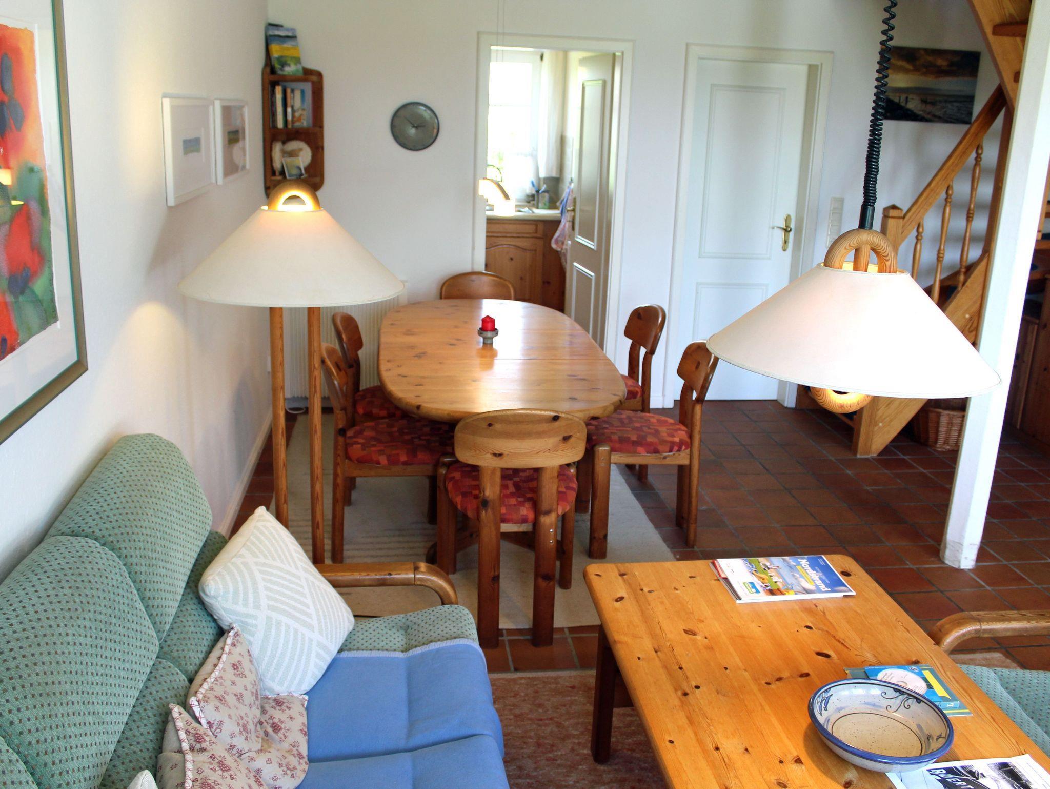 Das Ankerplätzchen ist ein Hausteil eines Reetdachanwesens, welches im typisch friesischem Stil erbaut ist,. Das Haus ist ca. 90qm groß und ist für 2 bis 6 Personen geeignet. Im Erdgeschoss befinden sich das geräumige Wohnzimmer mit jeweils separatem Wohn- und Essbereich, die Küche mit einer komplett ausgestatteten Einbauküche mit Spülmaschine, Mikrowelle usw. Vom Flur aus ist ein zusätzliches Gäste-WC zu erreichen, und vom Wohnzimmer aus geht es auf die zwei sowohl südost als auch südwest ausgerichteten Außenterrassen mit eigenem Strandkorb. Das Haus hat zwei Schlafzimmer, eines mit einem Doppelbett und ein weiteres mit zwei Einzelbetten, sowie Dusche/WC im 1. Stock, ein drittes Schlafzimmer mit ebenfalls zwei Einzelbetten im oberen als Galerie ausgebauten Giebelzimmer. Unser Ankerplätzchen verfügt über einen Glasfaseranschluss. Bettwäsche und Handtücher können optional dazu gebucht werden.